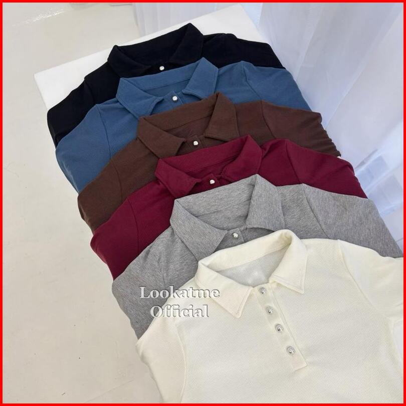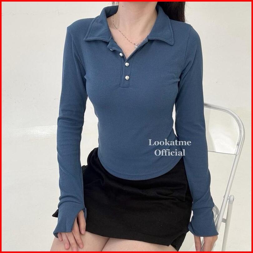 Joy Top - Atasan Wanita Kerah Longsleeve Bahan Knit Rib Premium Casual Top Hijab Lengan Panjang Kerah Kancing Melar Nyam