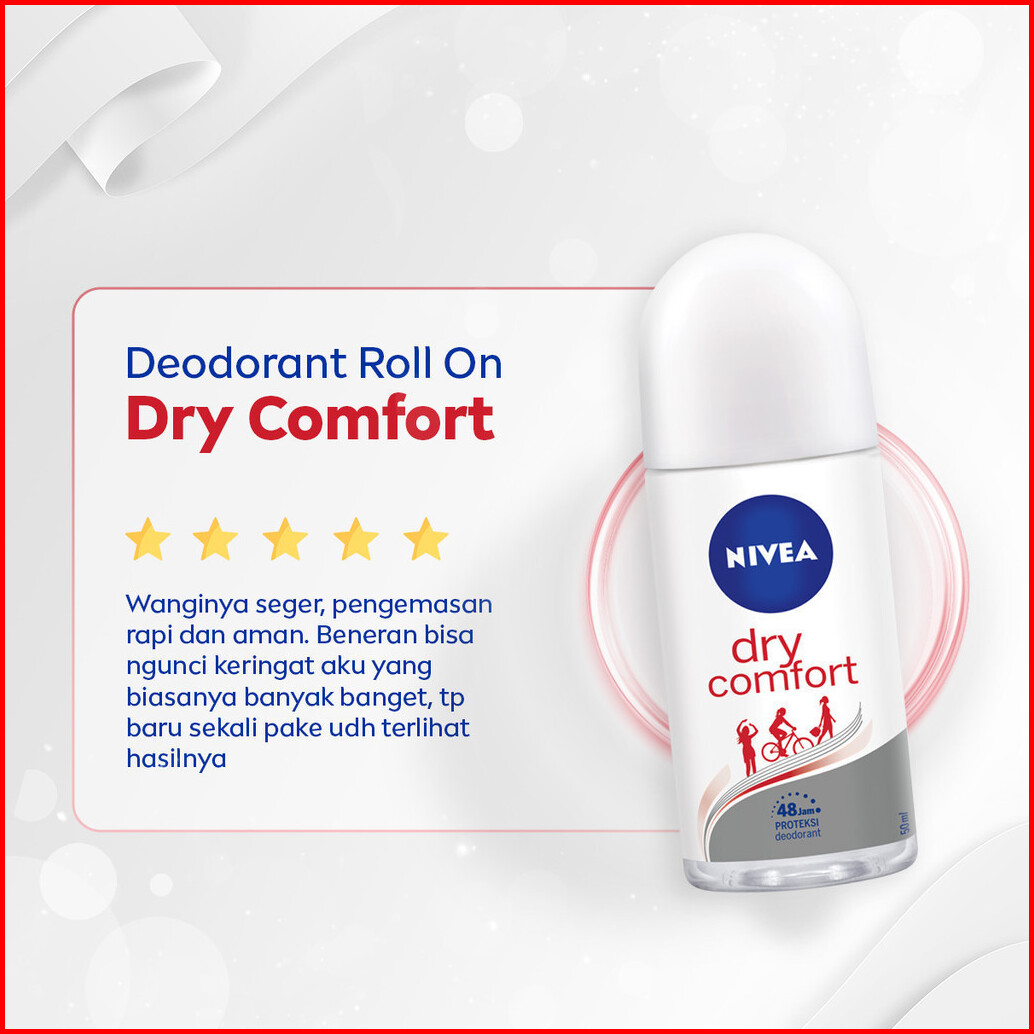 Nivea Deodorant Roll On Dry Comfort 25ml - Deodoran Wanita Kering Mengontrol Minyak Anti Bau Keringat Dan Bakteri Dengan