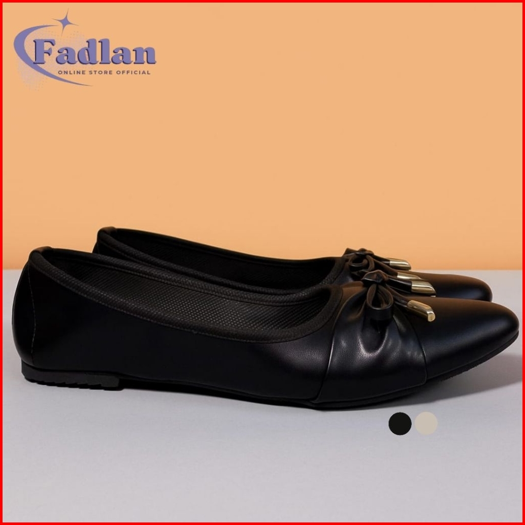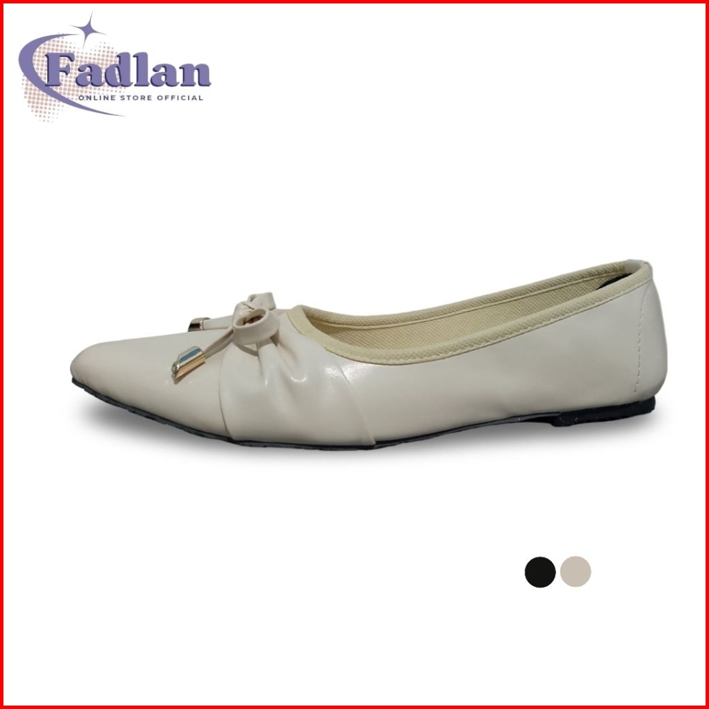 Sepatu Flat Shoes Wanita Kasual Hak Rendah Pita Depan Kekinian