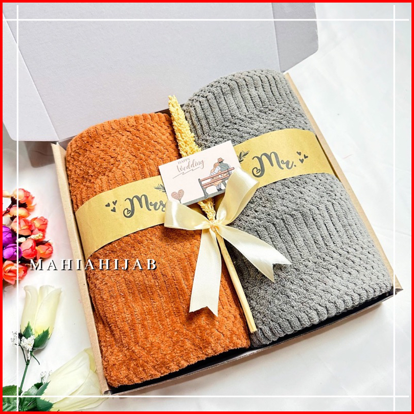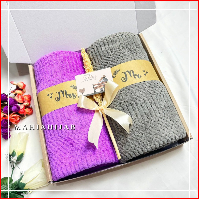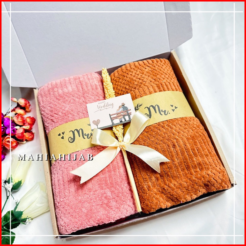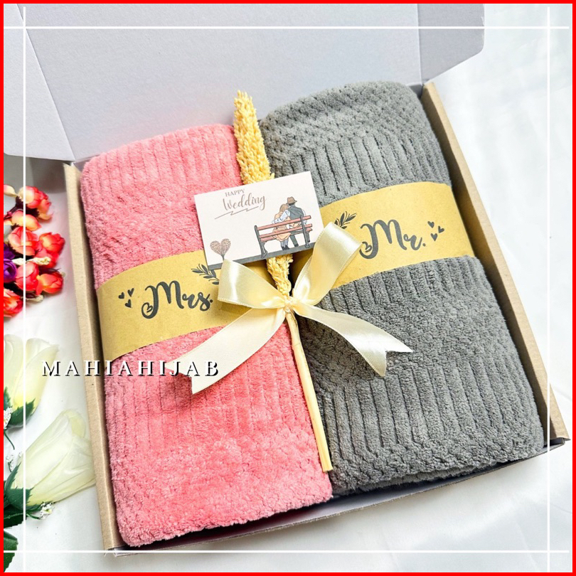 Hadiah Hampers Kado Pernikahan Handuk Couple 70x140cm Hampers Kado Souvenir Wedding Gift Set Box Handuk Hampers Wedding