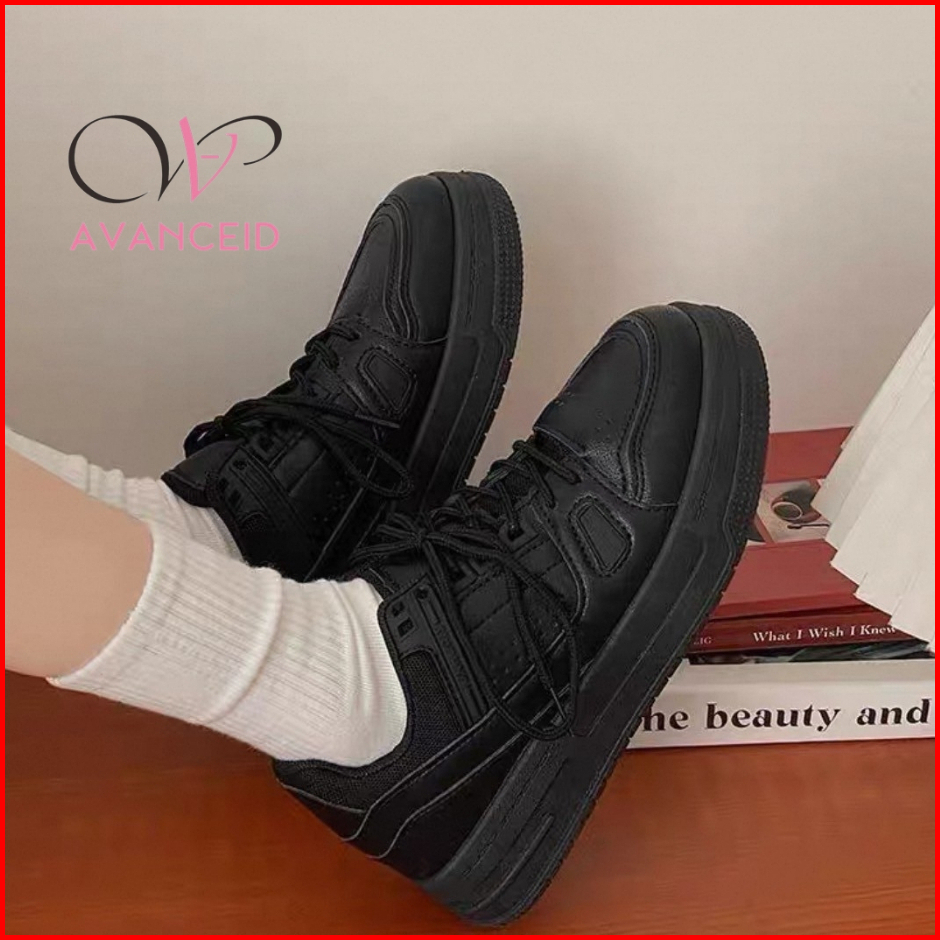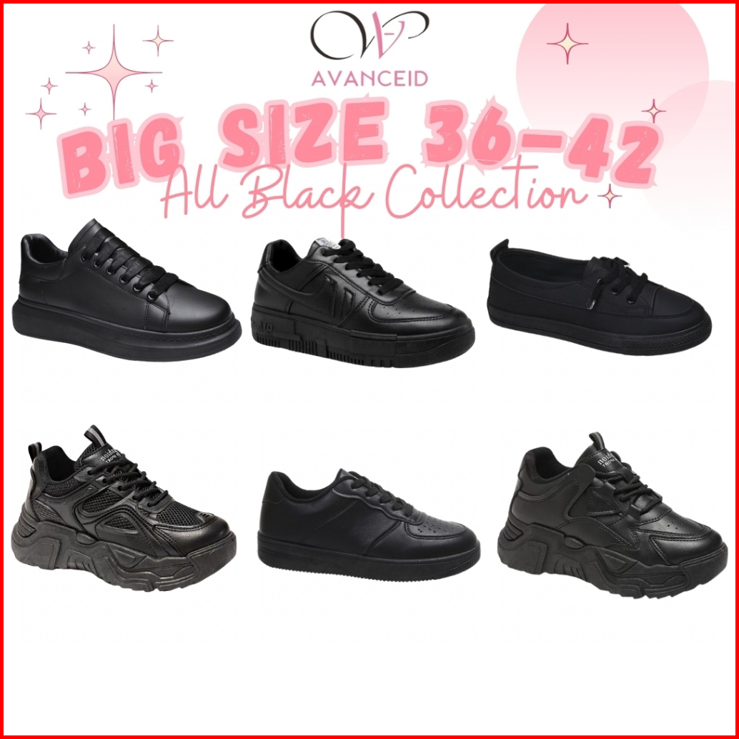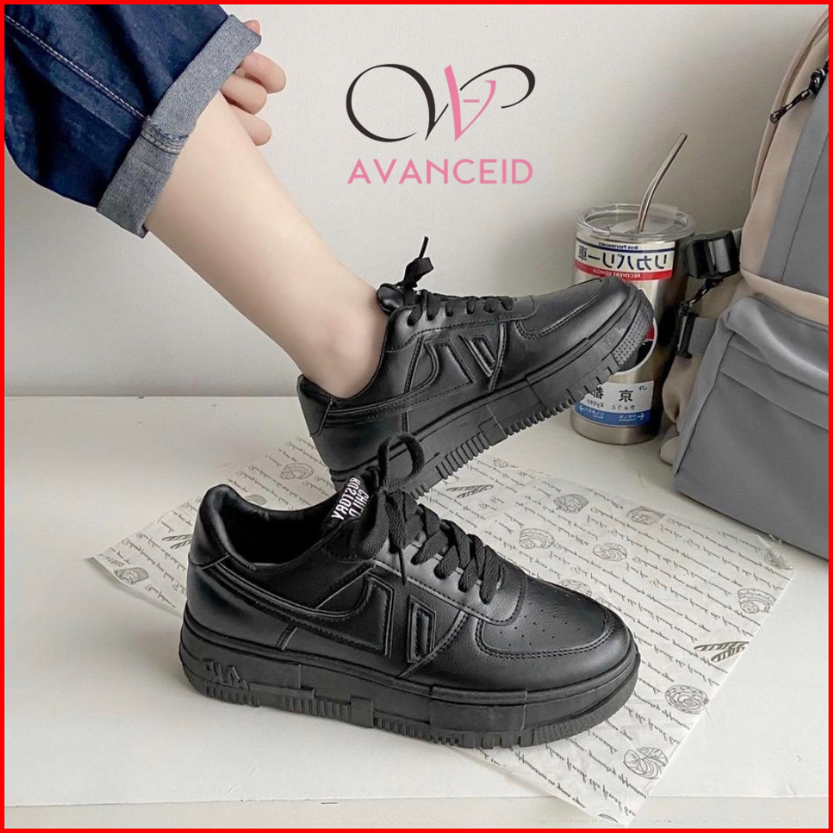 Avanceid Koleksi Allblack Size 36-42 Sepatu Sneakers Wanita Sekolah Kerja Hitam