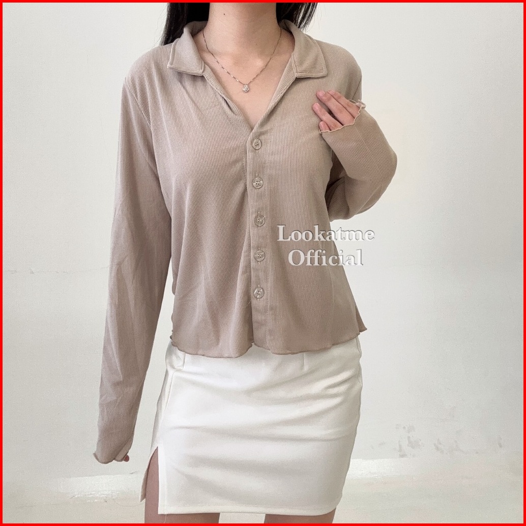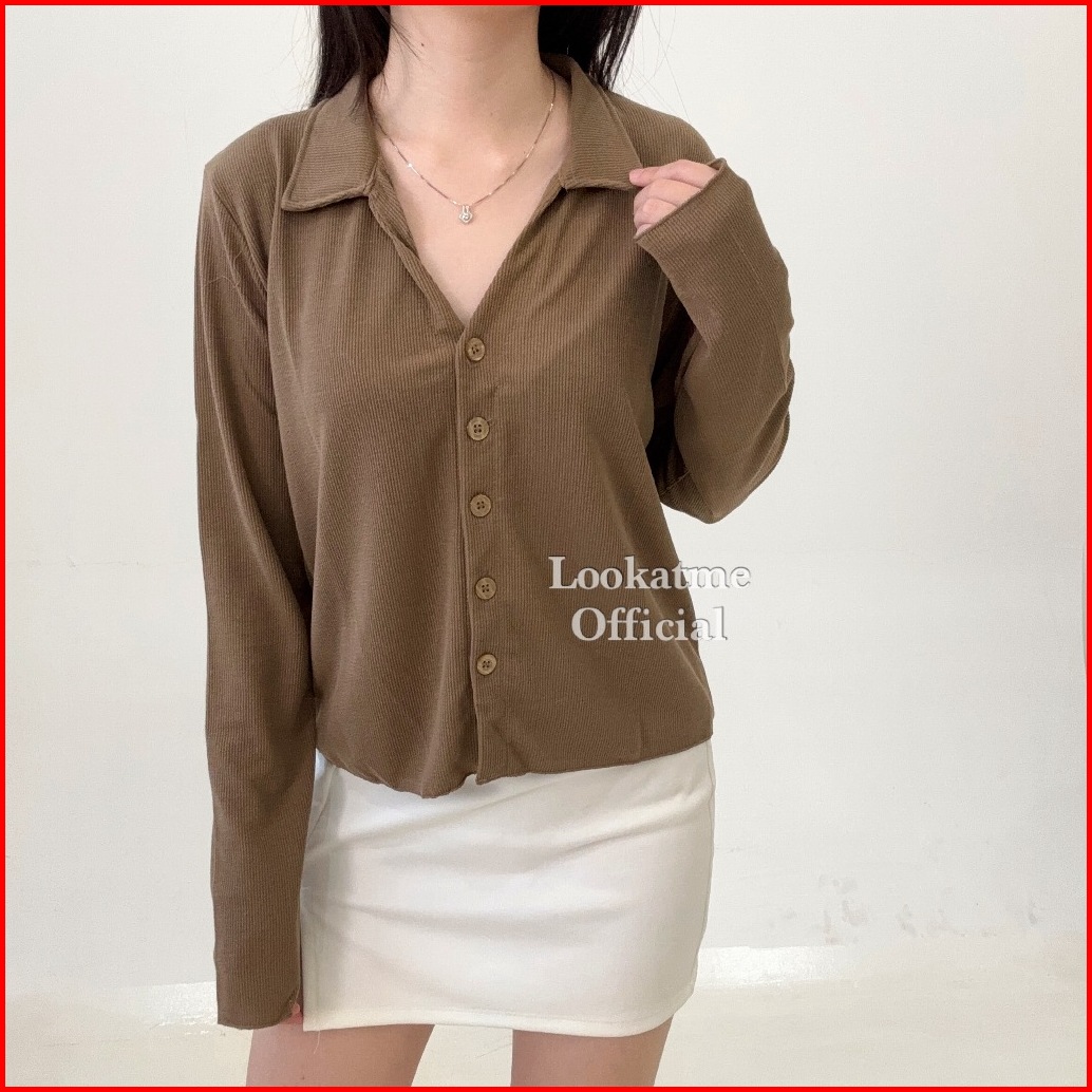 Flow Kmj - Atasan Kemeja Loose Oversize Lengan Panjang - Kemeja Rib Knit Premium