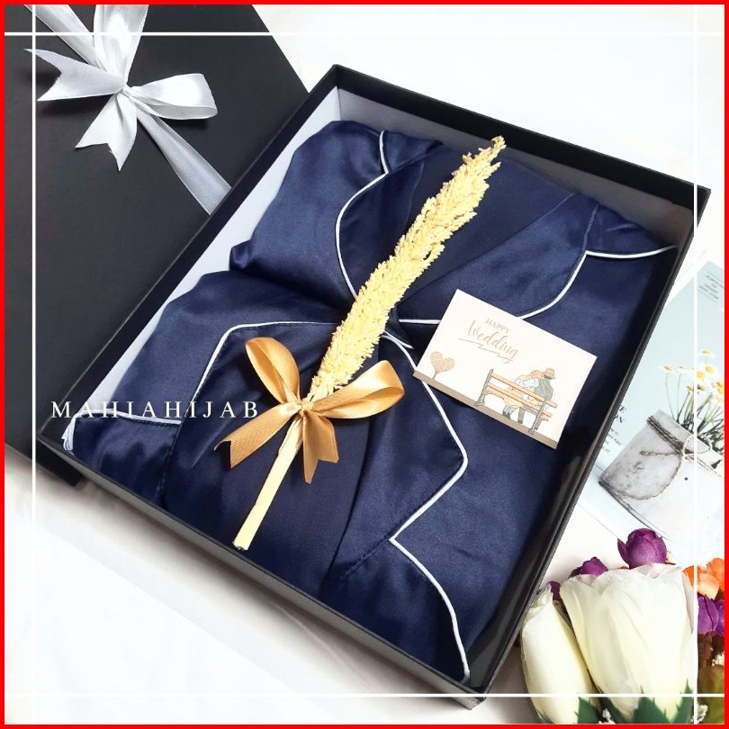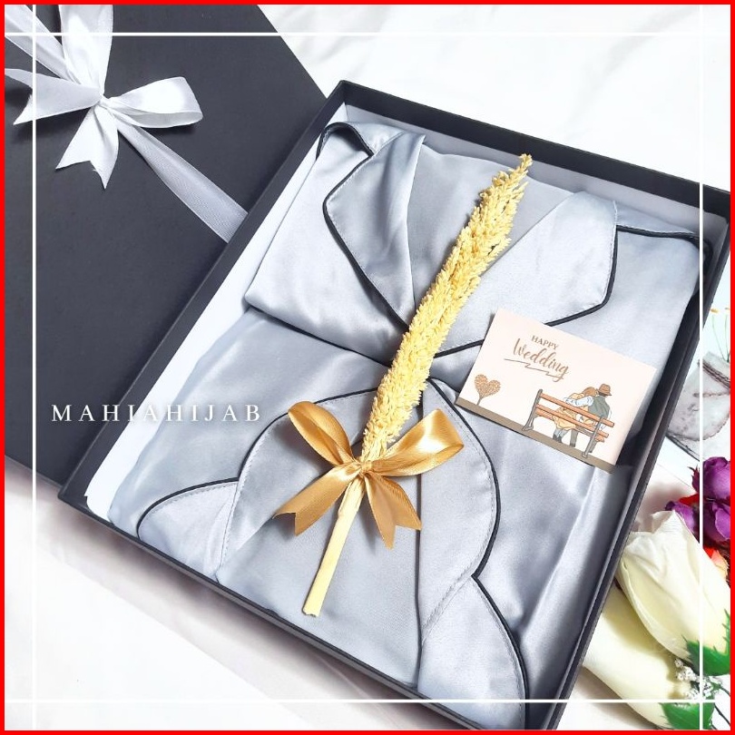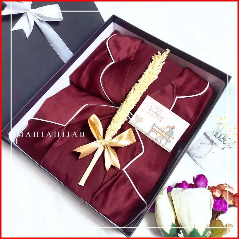 Hampers Wedding Piyama Satin Couple Hardbox Exclusive Kado Pernikahan Baju Tidur Pasangan Custom Card Hadiah Anniversary