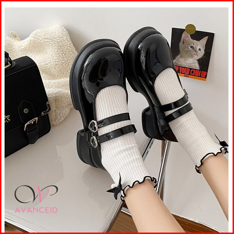 Avanceid Karina Heels Sepatu Sneakers Wanita Kerja Docmart Hitam