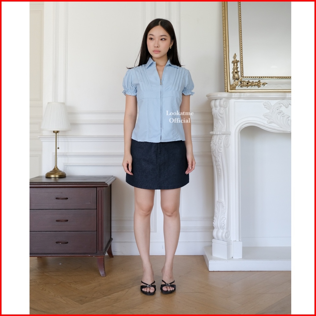 Claire Shirt - Atasan Kemeja Fitted Slim Body Lengan Pendek Basic Casual Vintage Look Baju Basic Kerja Kantor Formal Top