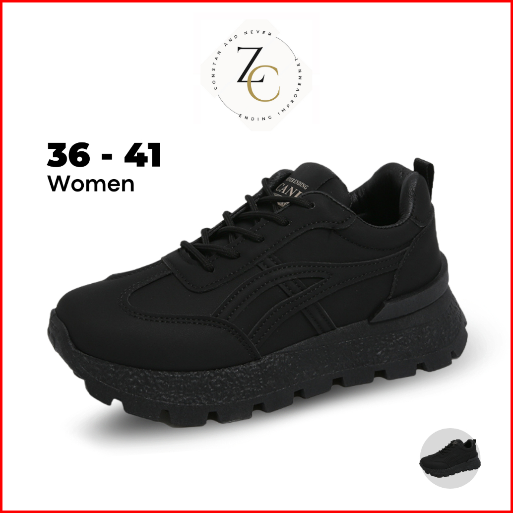 Kara Sepatu Sneakers Full Black Wanita Sepatu Hitam Polos Casual Sepatu Sekolah C9007
