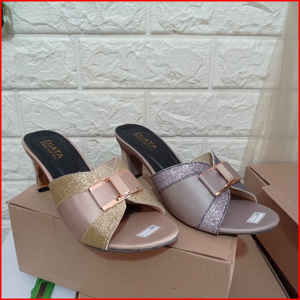 Diata Sandal Heels Wanita Pita Besar Kemilau Korean Style Sandal Kondangan Mewah Elegan