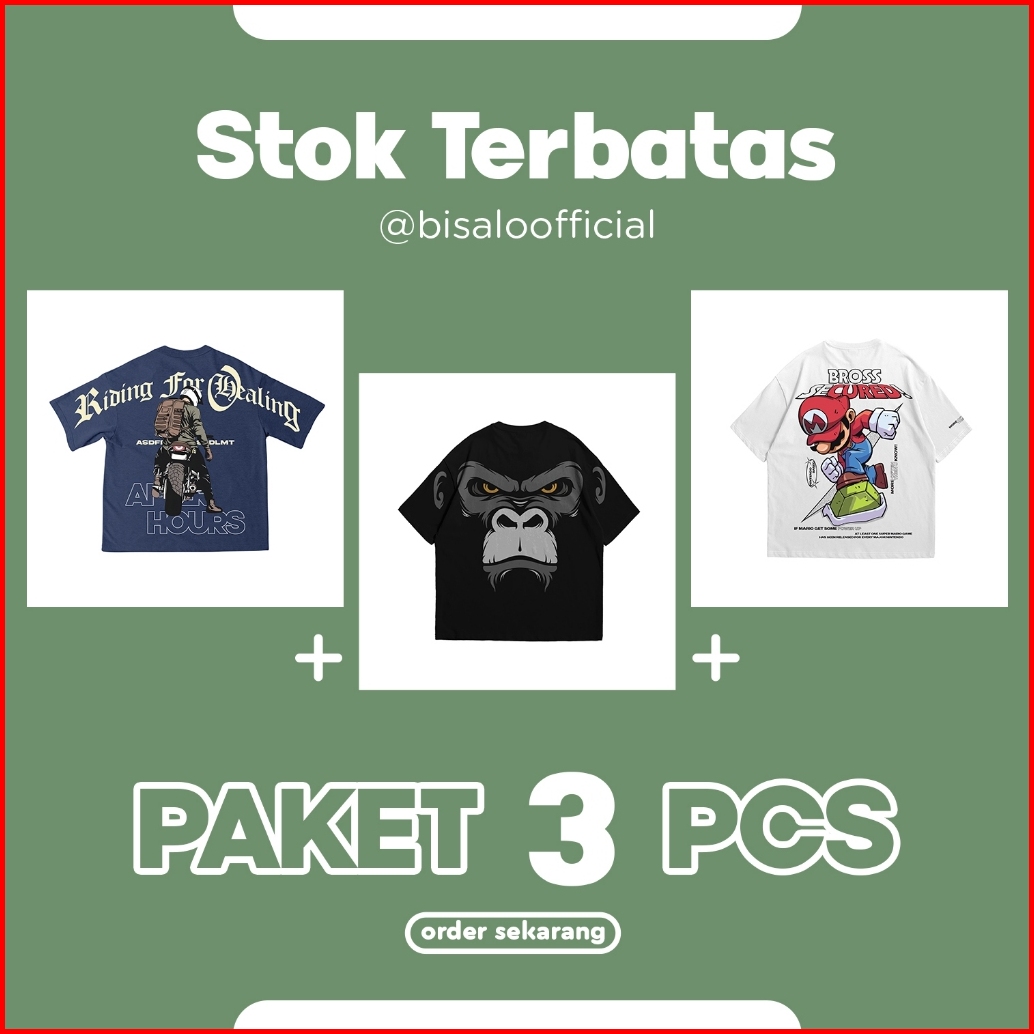 Paket Spesial Bundling Bisalo T-shirt Kaos Pria Lengan Pendek 3pcs Cotton 30s Printing Digital Hitam Putih Polos Paket B