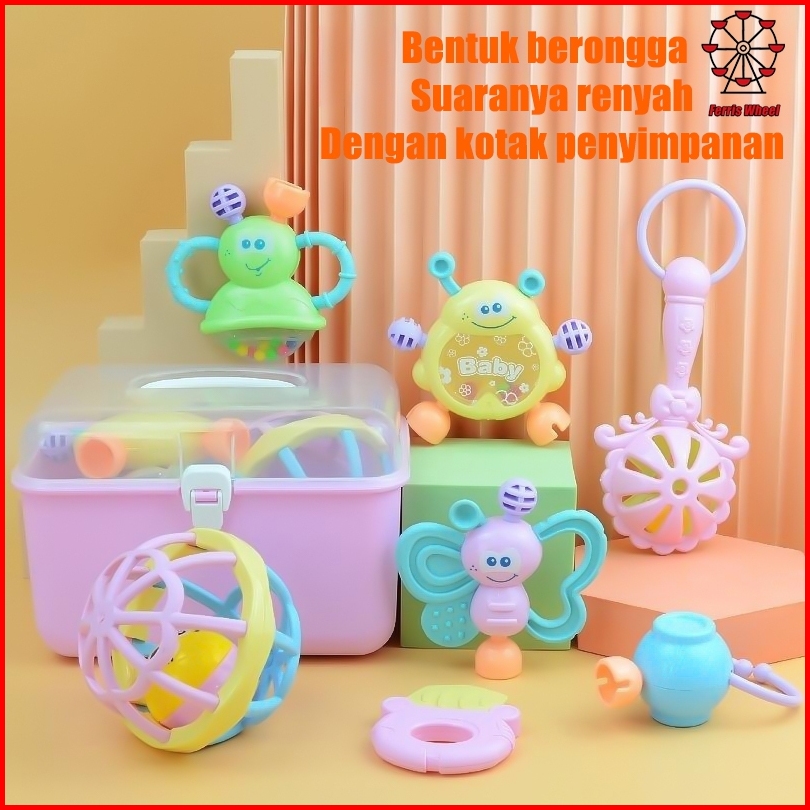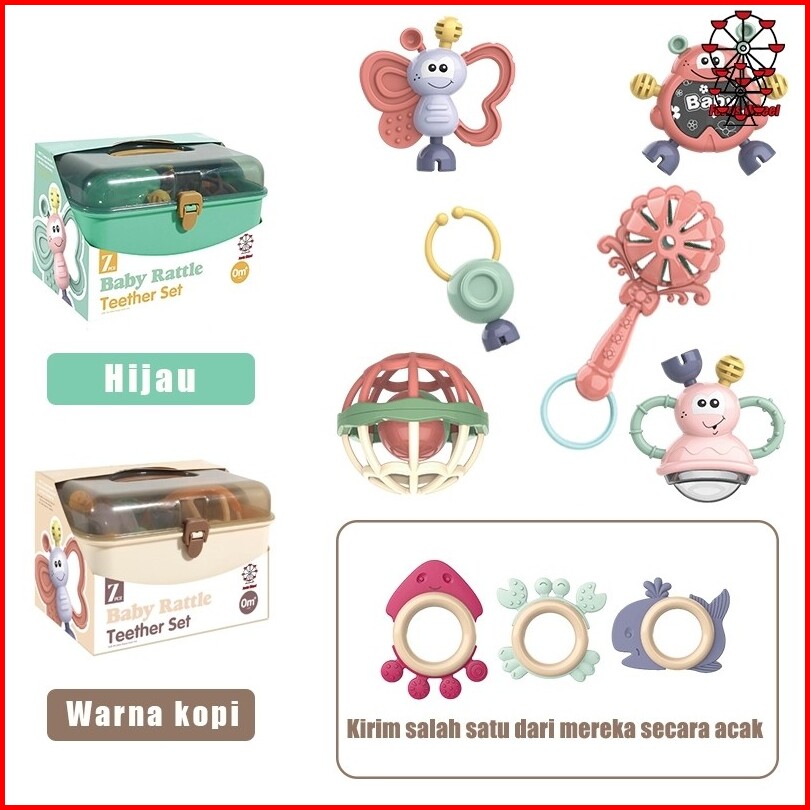 Ferris Wheel 7pcs Kotak Penyimpanan Gum Gigi Mainan Kerincingan Teether Gigitan Bayi Set Bpa Free Baby Teether Rattle Ma