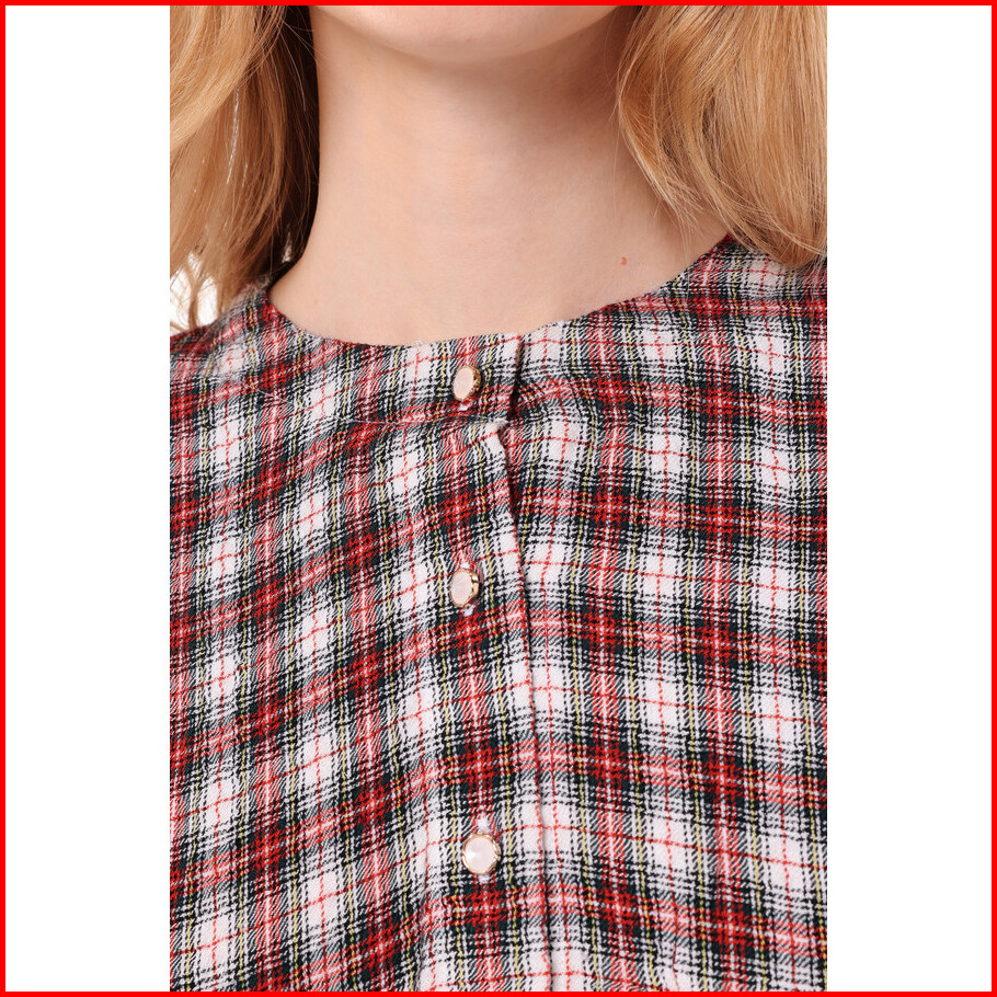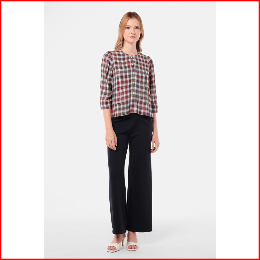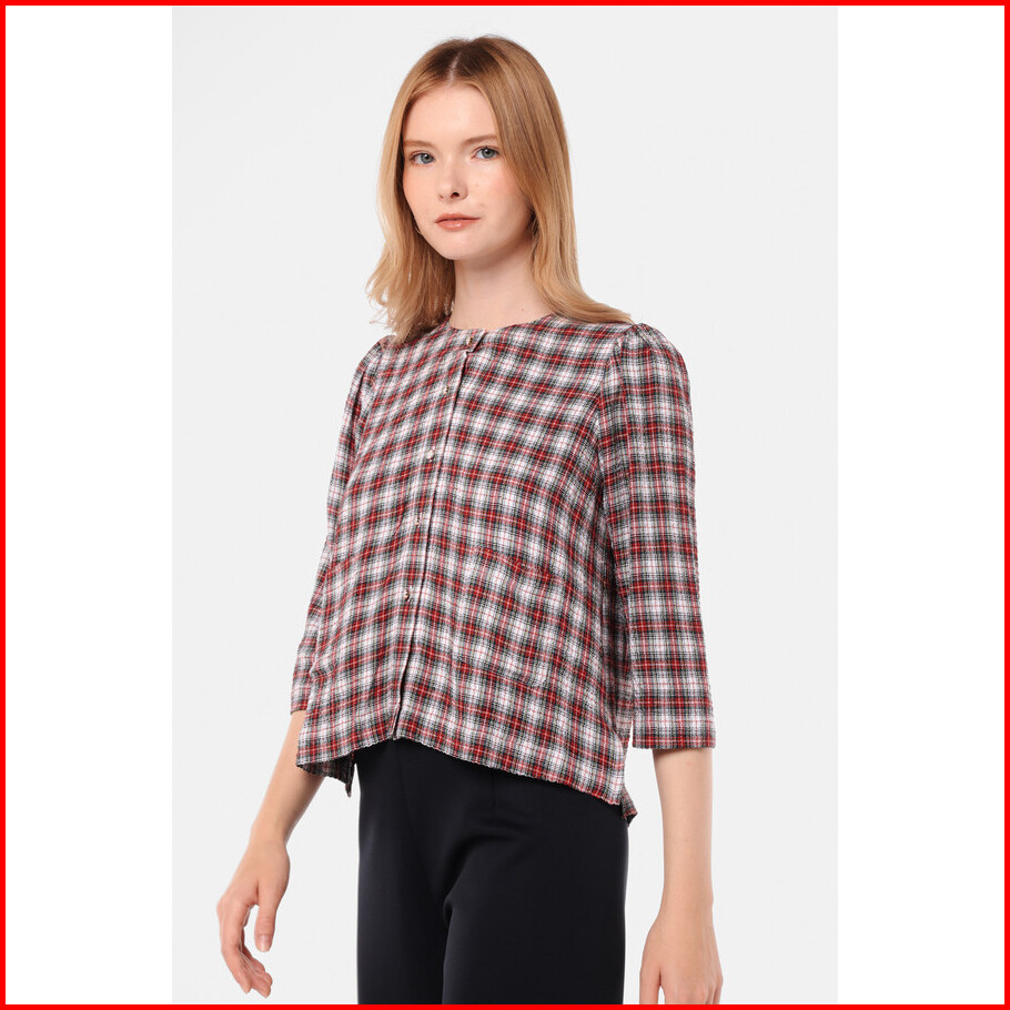 Minimal - Tilly - Blouse Pocket Wanita Motif Plaid - Red