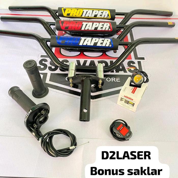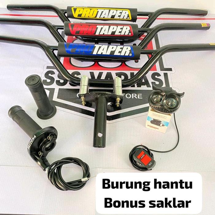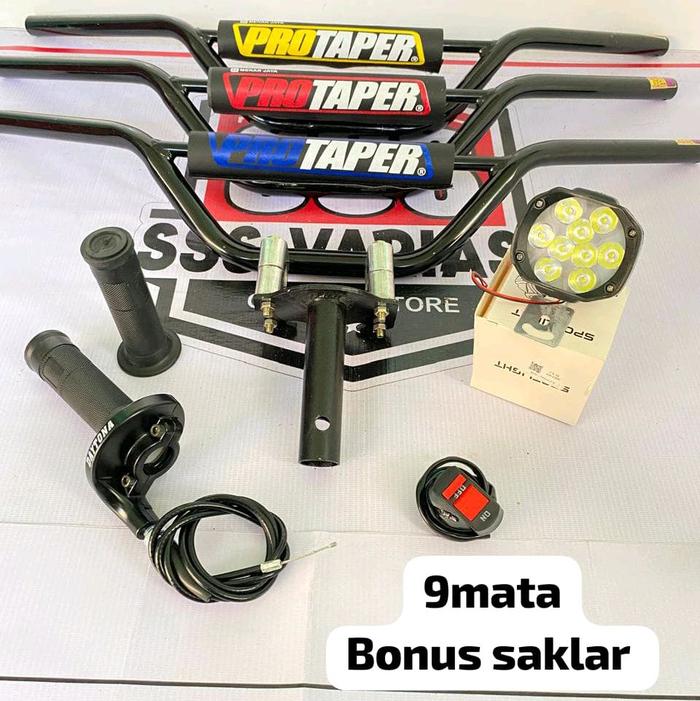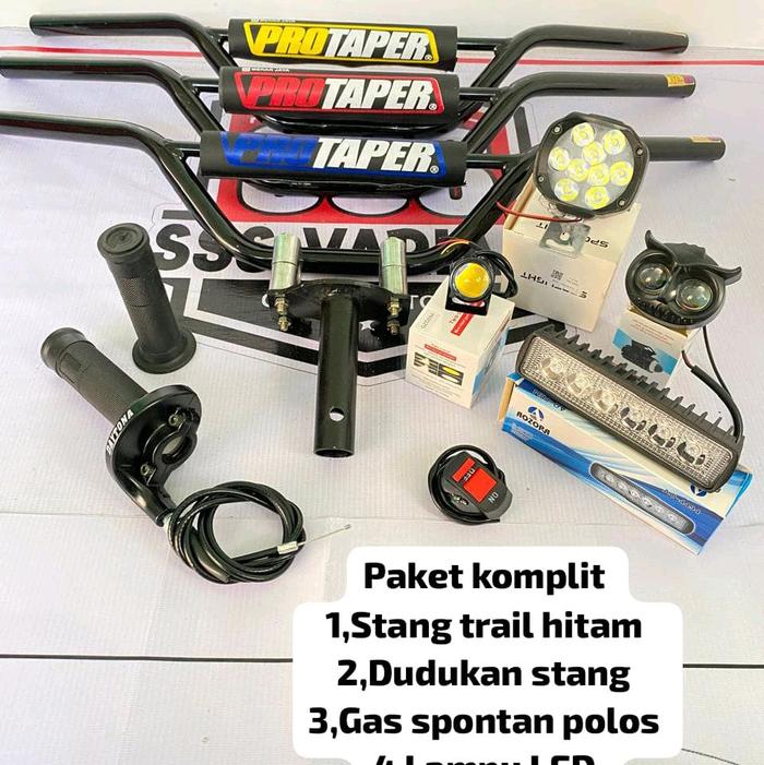 [Star]paket komplit stang trail hitam+dudukan/adaftor stang+gas spontan polos+lampu LED @bonus saklar lampu - lampu 9mat