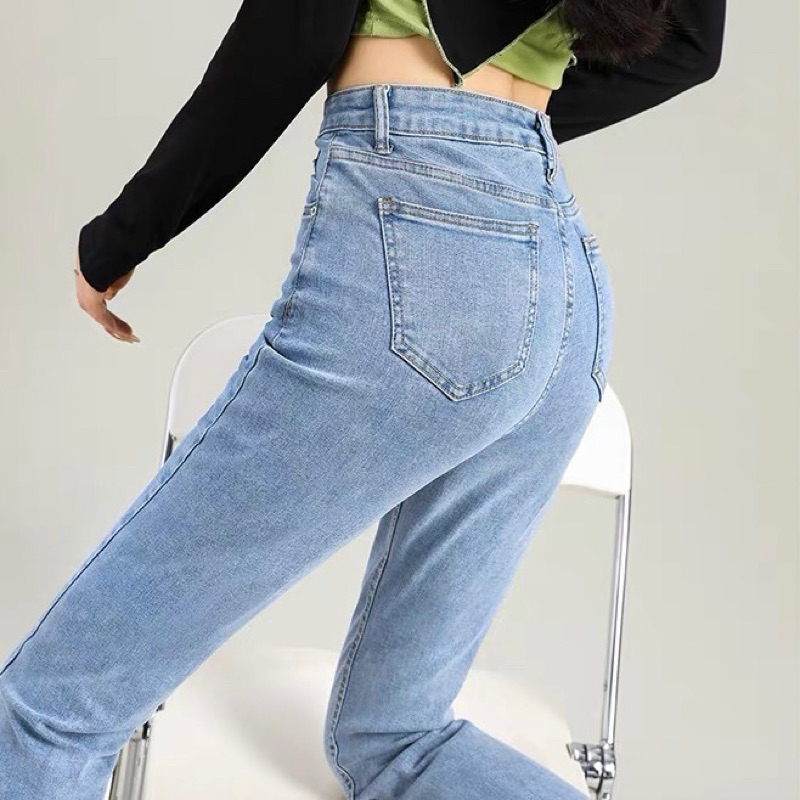 [Beevalue] Celana Jeans Panjang Wanita Highwaist BootCut / CutBray Stretch Ngaret Motif Belah Depan Bahan Impor | Celana Cutbray
