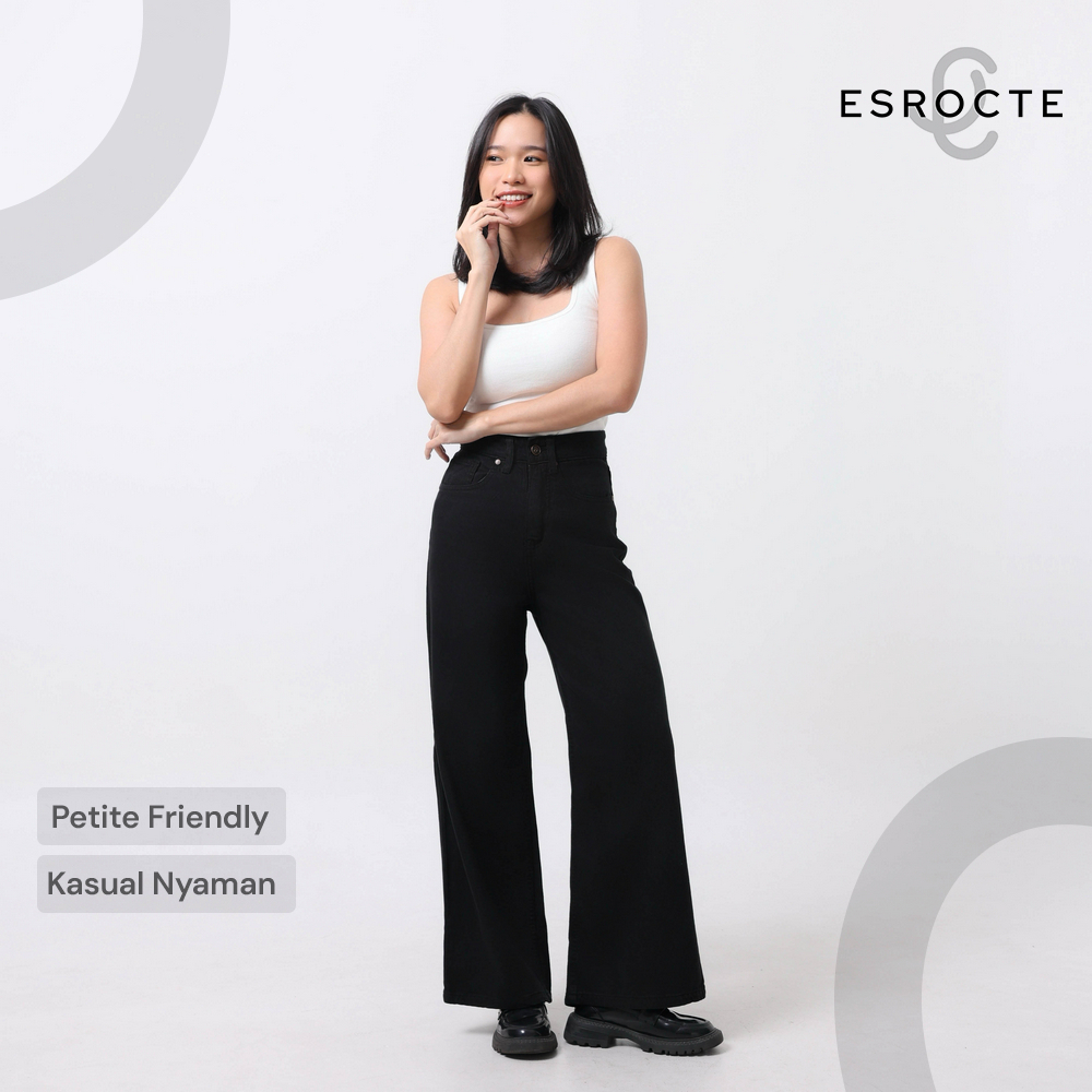 ESROCTE Naura Pants | Celana Kulot Jeans High-Waist Wanita –Navy Hitam Biru Muda– 26–38 (NEW SIZE)