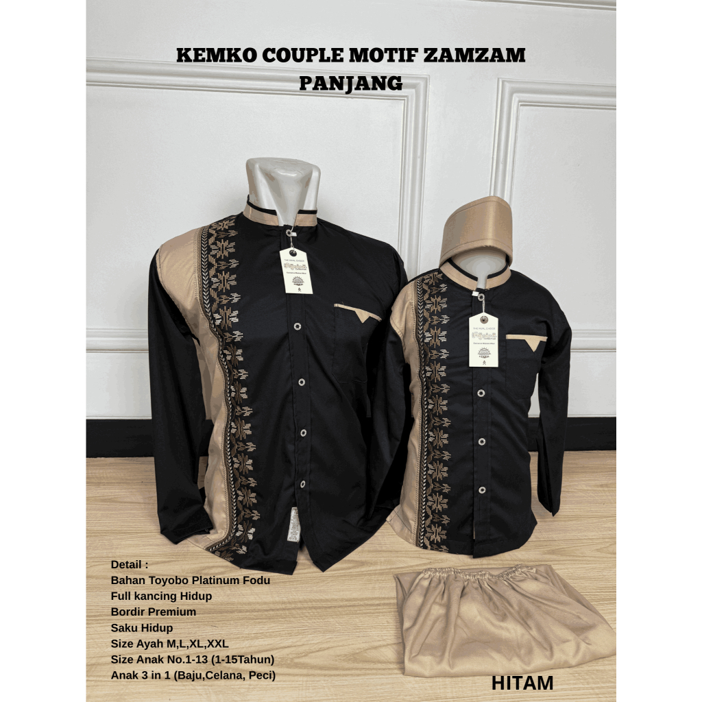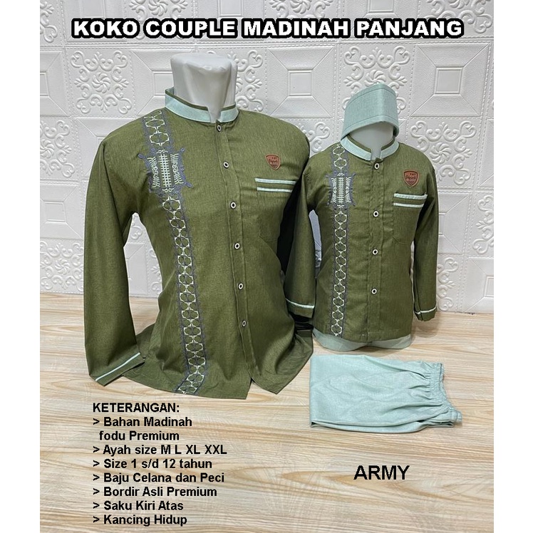 Baju koko Couple Ayah Anak Katun Sarimbit - Atasan Muslim Bordir Pria - Lebaran Baju Kembaran Murah