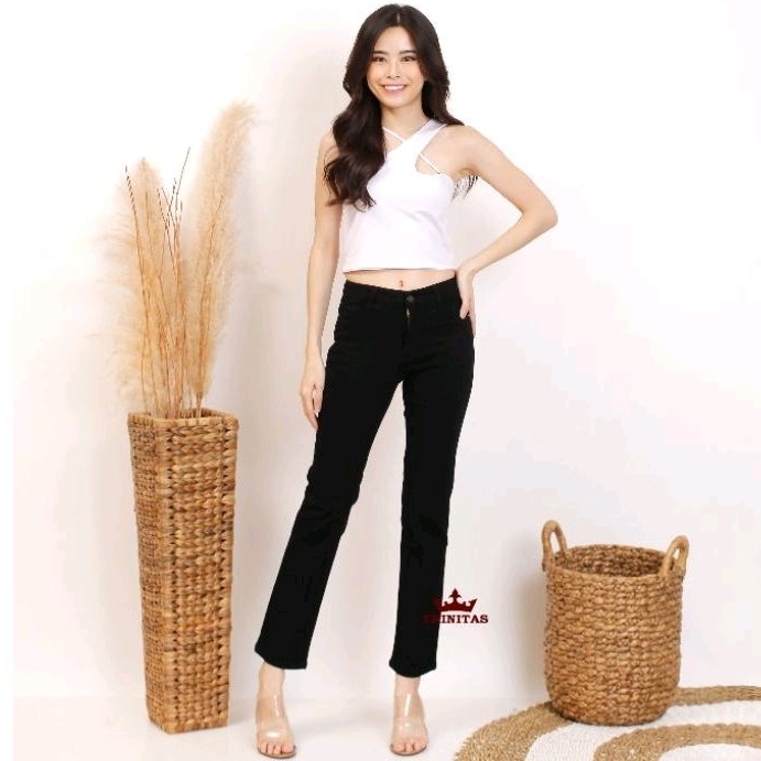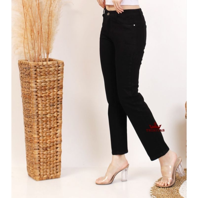 trinitas jeans wanita stret hitam freissy regular straight leg / black softjeans