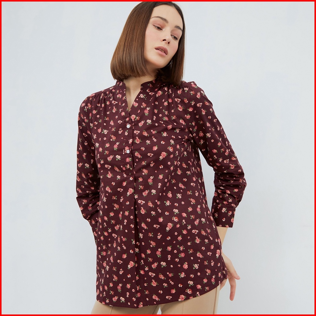 Point One Belina Floral Maroon Blouse
