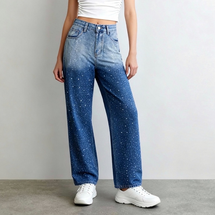 MEIN Celana Jeans Wanita Highwaist Denim Gradasi Blink-Blink Korean Style 7086
