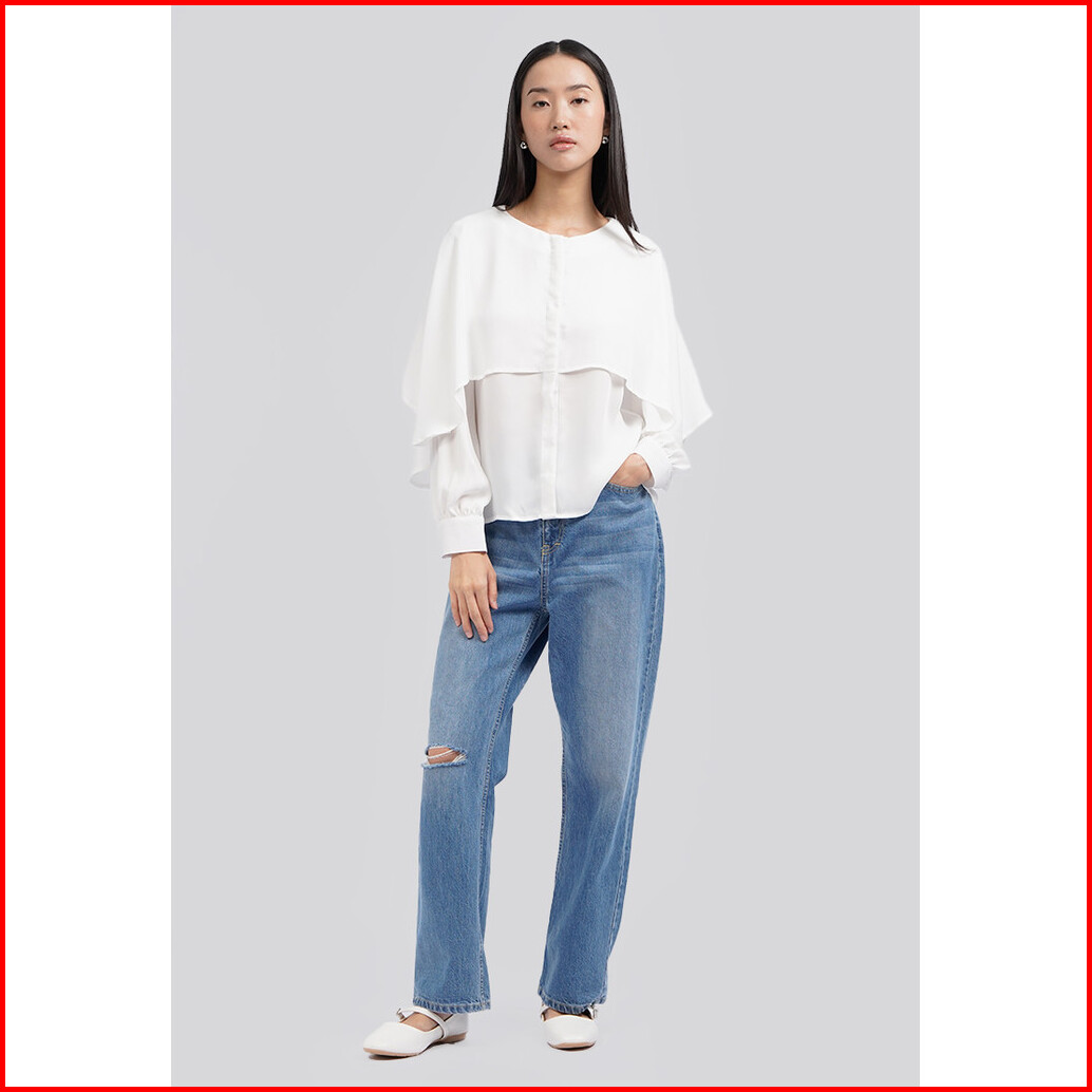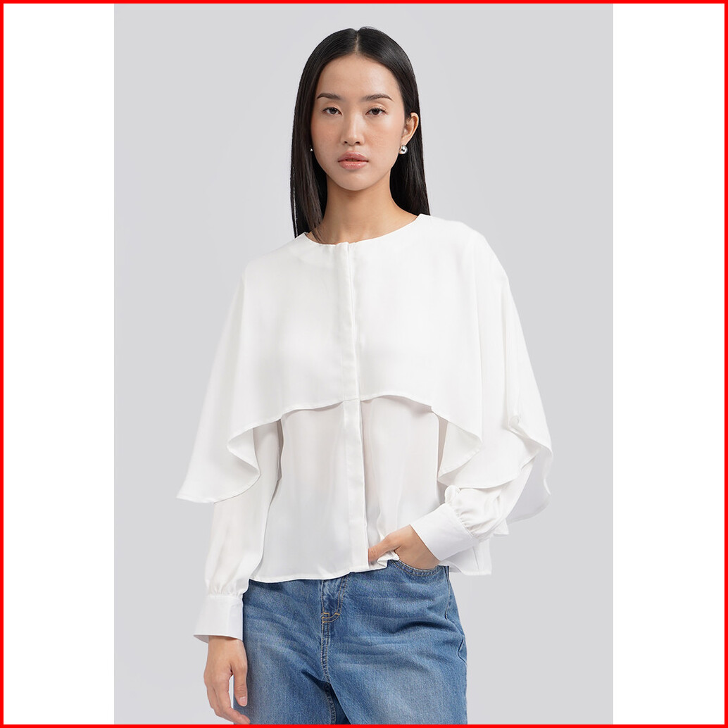 Executive Long Sleeve Layered Blouse Off White