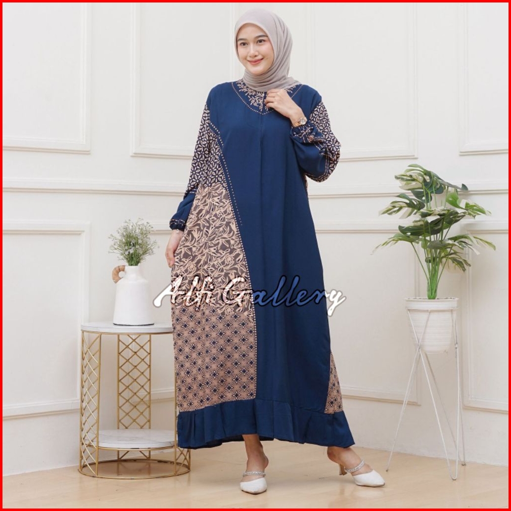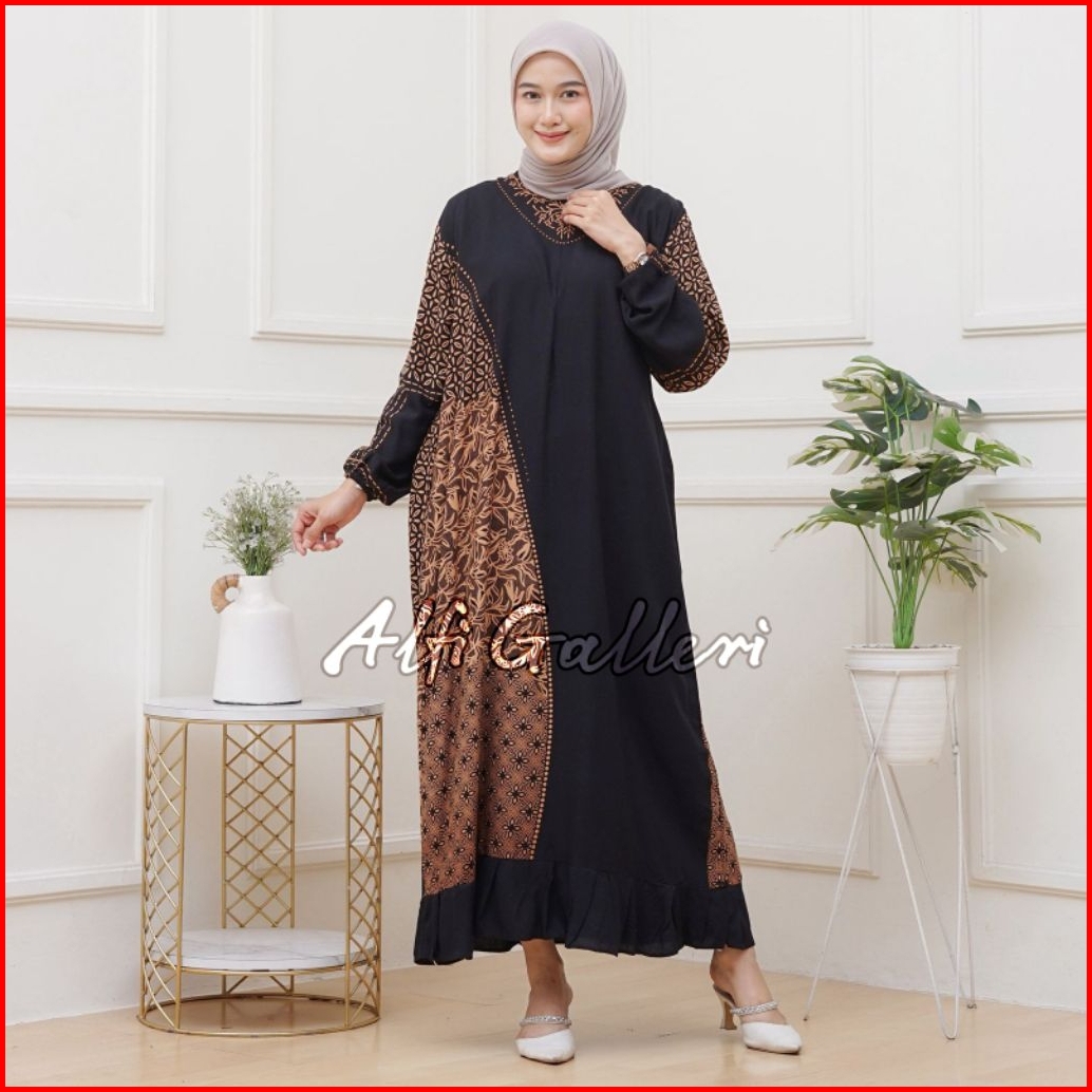 Kejora Dress Rayon Rempel Busui Lengan Panjang Homedress Daster Batik Adem Tebal Nyaman
