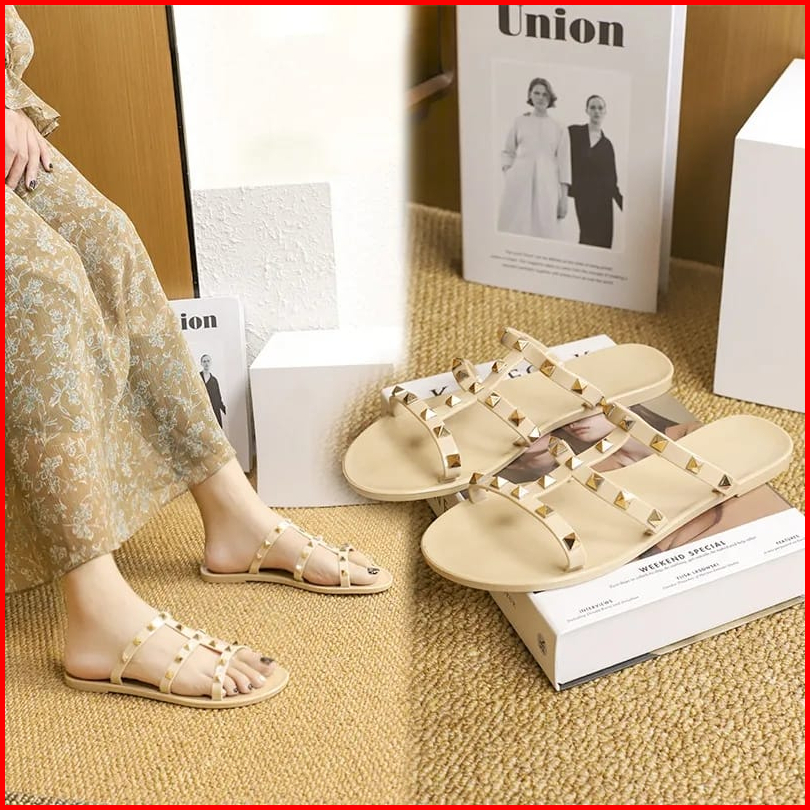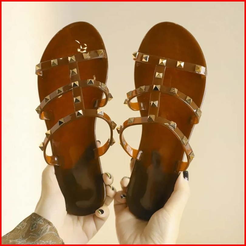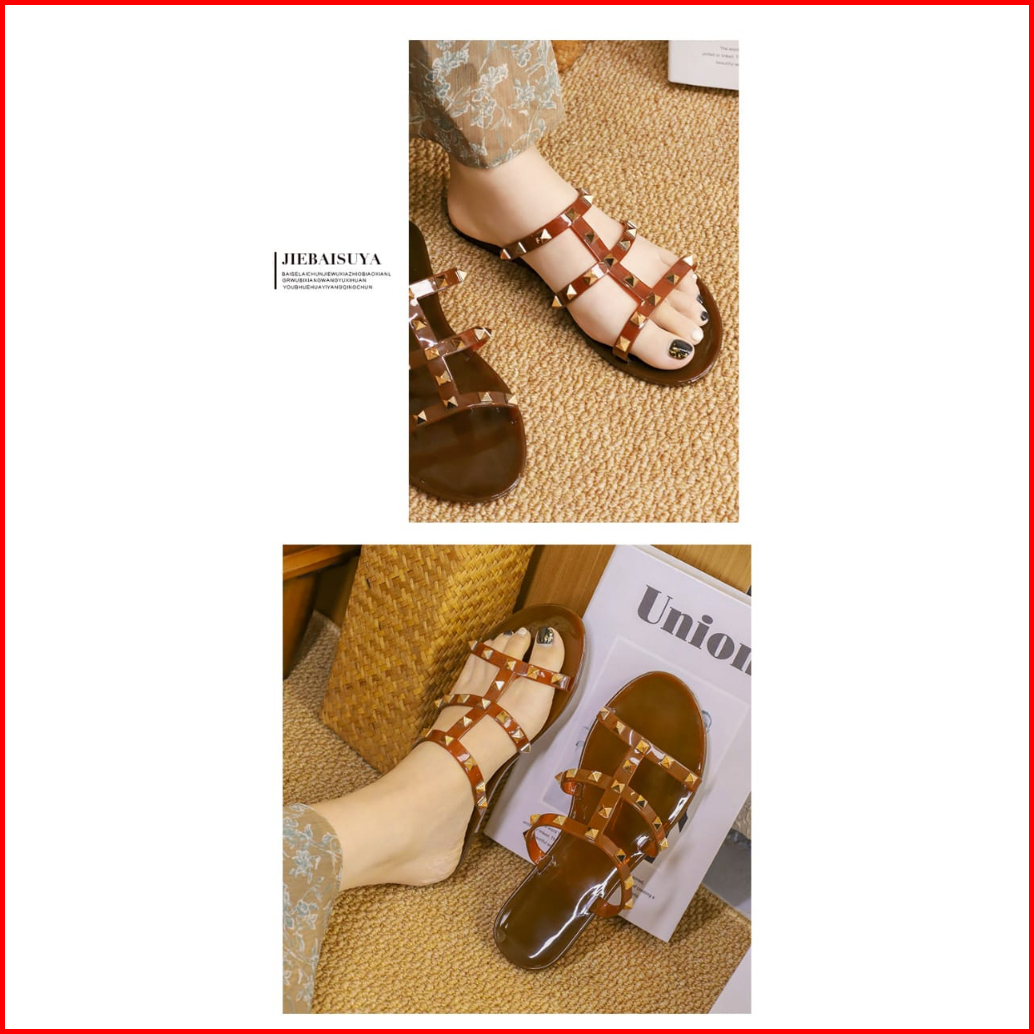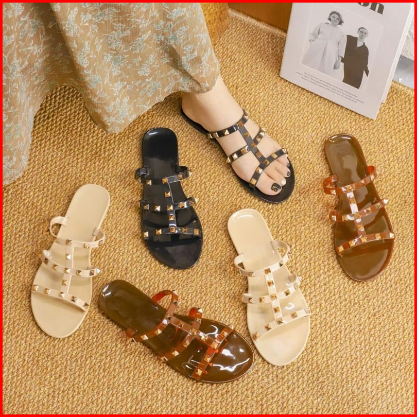 Sandal Wanita Jelly Stud Garis Nyaman Dan Empuk Termurah
