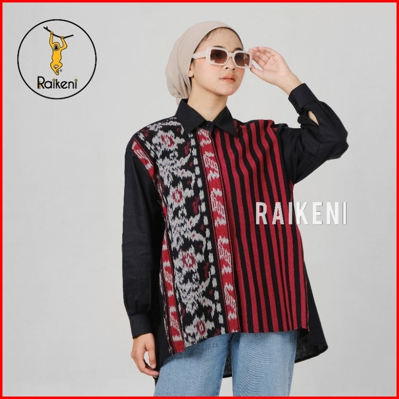 Raikeni Kemeja Nara Kemeja Blouse Batik Tenun Kuning Wanita Blouse Santai Kemeja Undangan Etnik