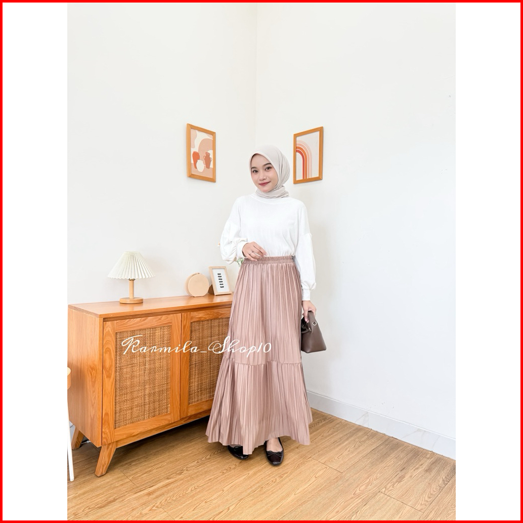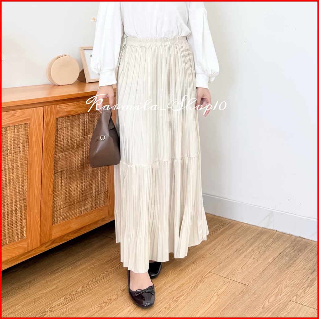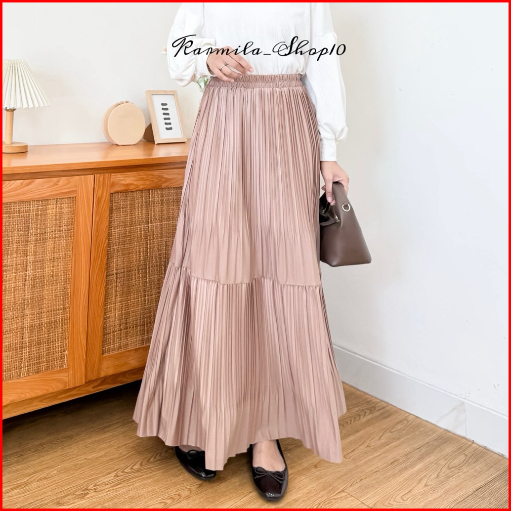Aileen Pleated Skirt Bb Premium - Rok Panjang Wanita Maxi Plisket Bb Fit To Xxl