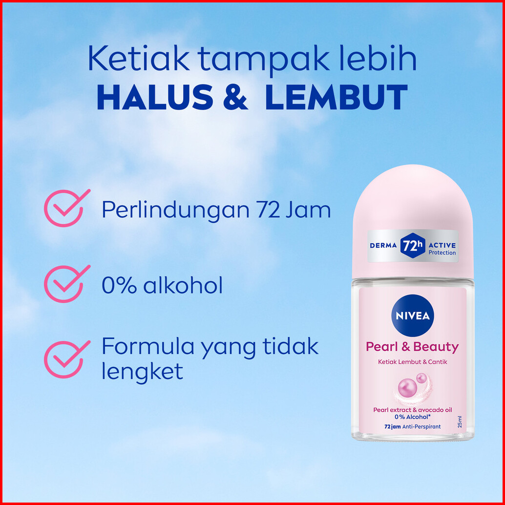 Nivea Deodorant Roll On Pearl Beauty 25ml - Deodoran Wanita Mencerahkan Brightening Glowing Kulit Ketiak Halus Tahan Ker