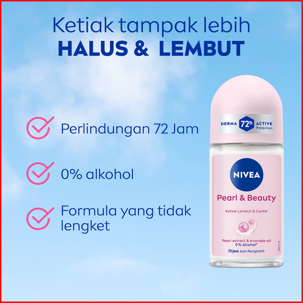 Nivea Deodorant Roll On Pearl Beauty 50ml - Deodoran Wanita Mencerahkan Brightening Glowing Kulit Ketiak Halus Tahan Ker