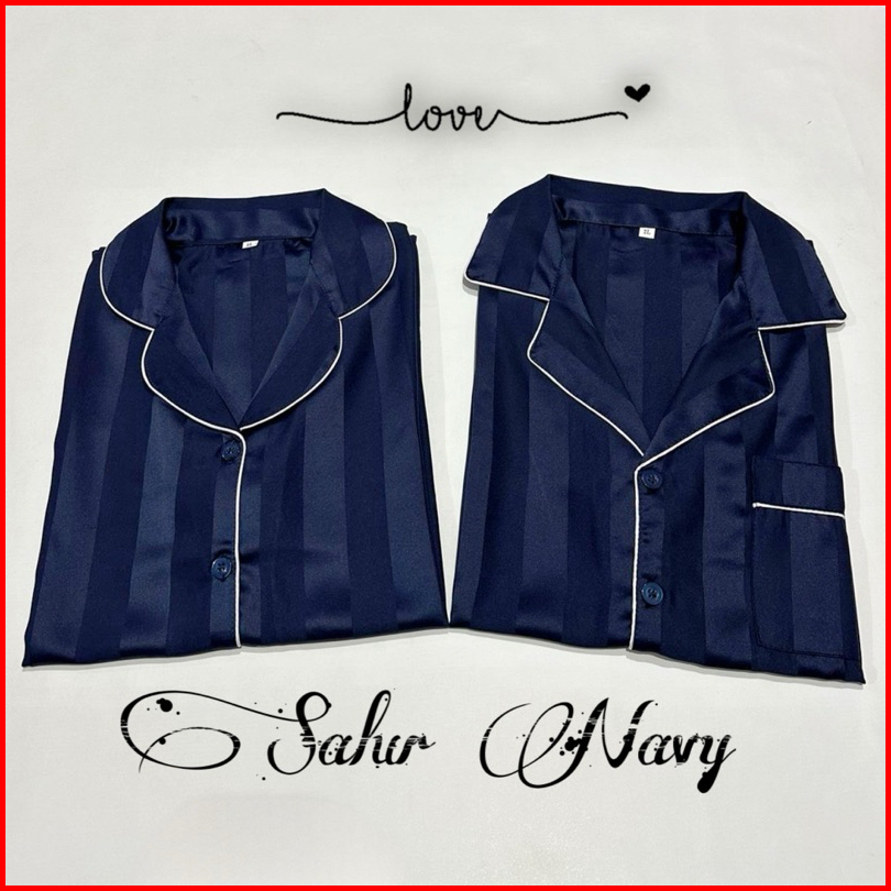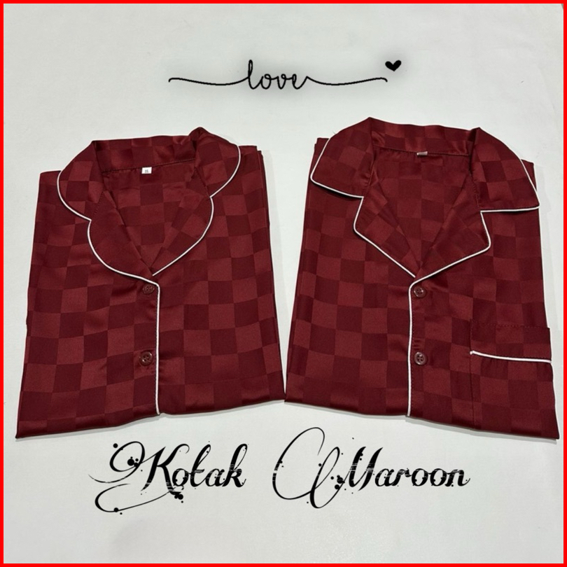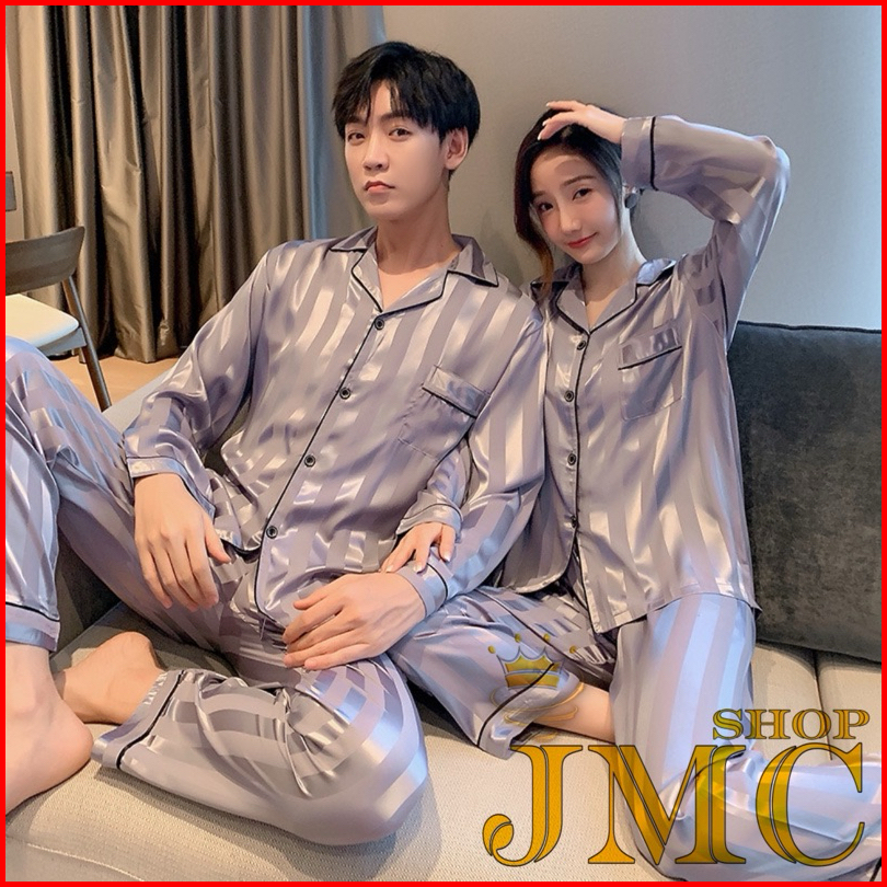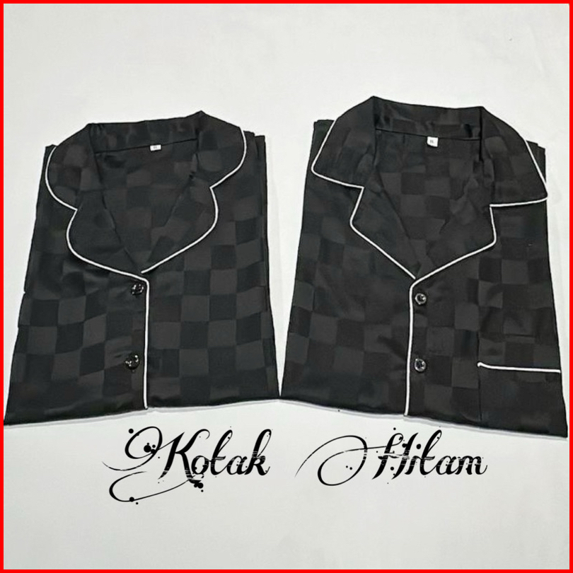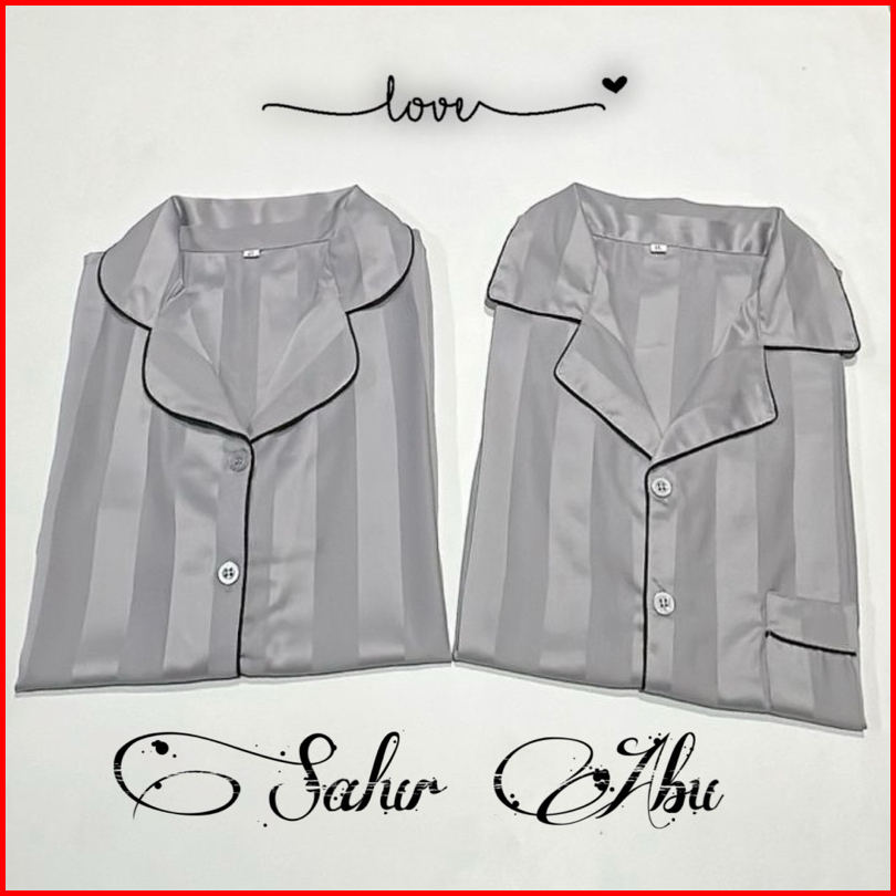 Paket 2pcs Couple Pp Satin Salur Dan Kotak Bajutidur Piyama Panjang Cwek Dan Cwok