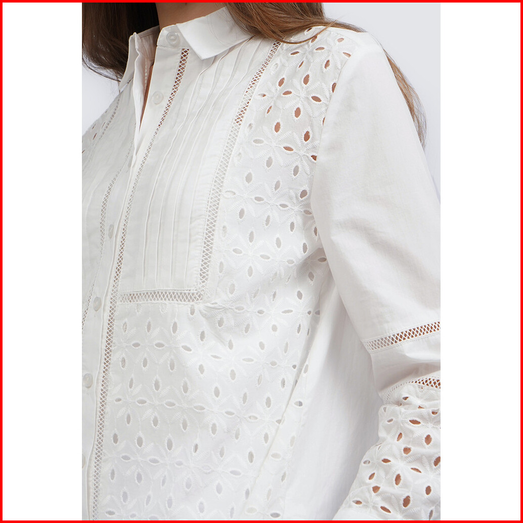 Et Cetera Long Sleeve Eyelet Blouse Off White