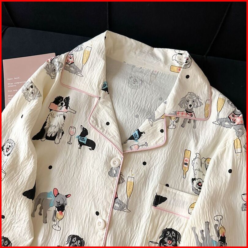 Baju Tidur Piyama Set Wanita Bs-5076 Cartun Cute Santai Lengan Panjang Celana Panjang Kancing Depan Sleepwear Mimon Home