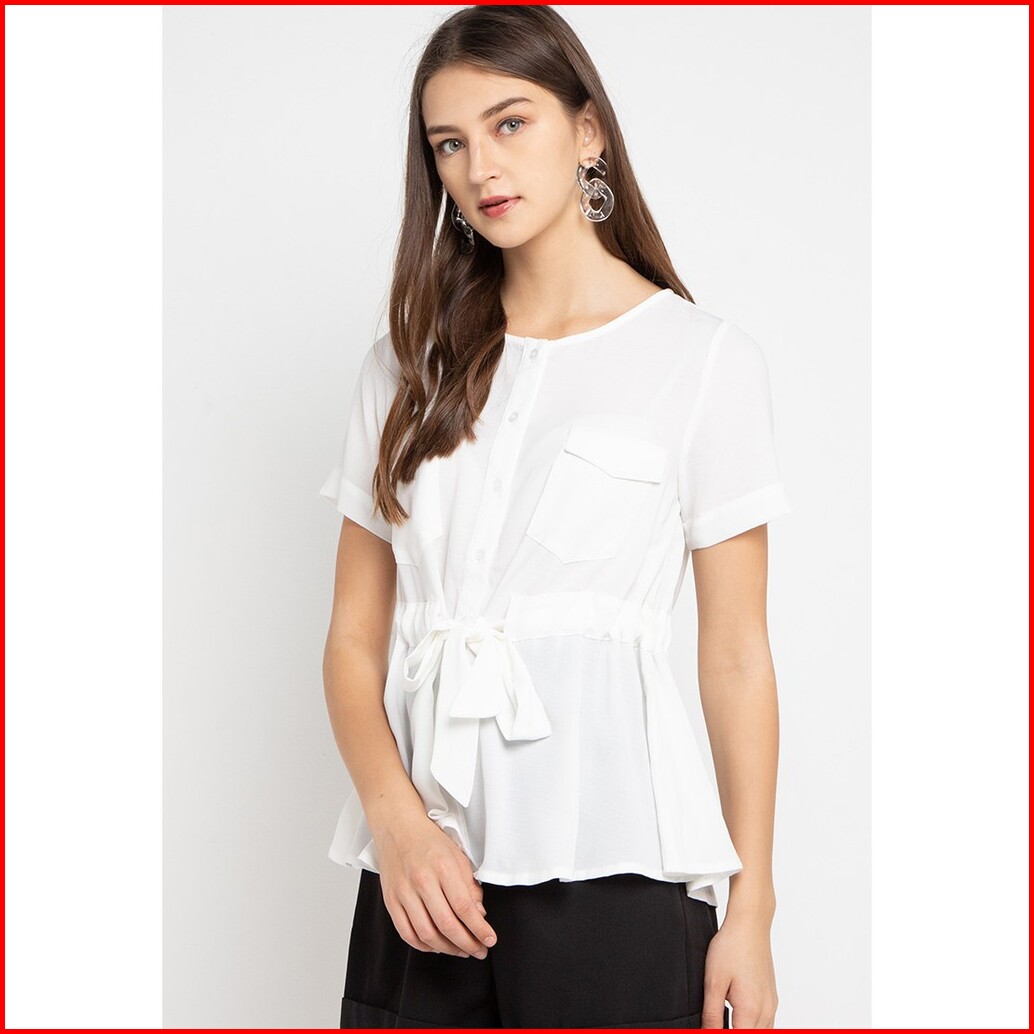 Fame - Blouse Wanita Lengan Pendek Putih - 9221503