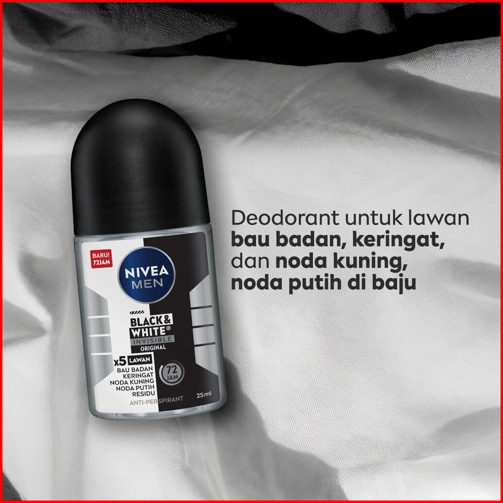 Paket Hemat Isi 2 Nivea Men Deodorant Roll On Black White Invisible Original 25ml - Deodoran Pria Melawan Bakteri Kering