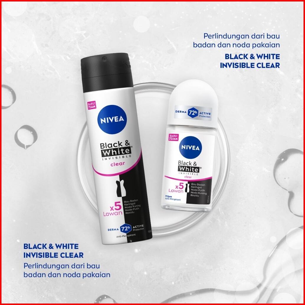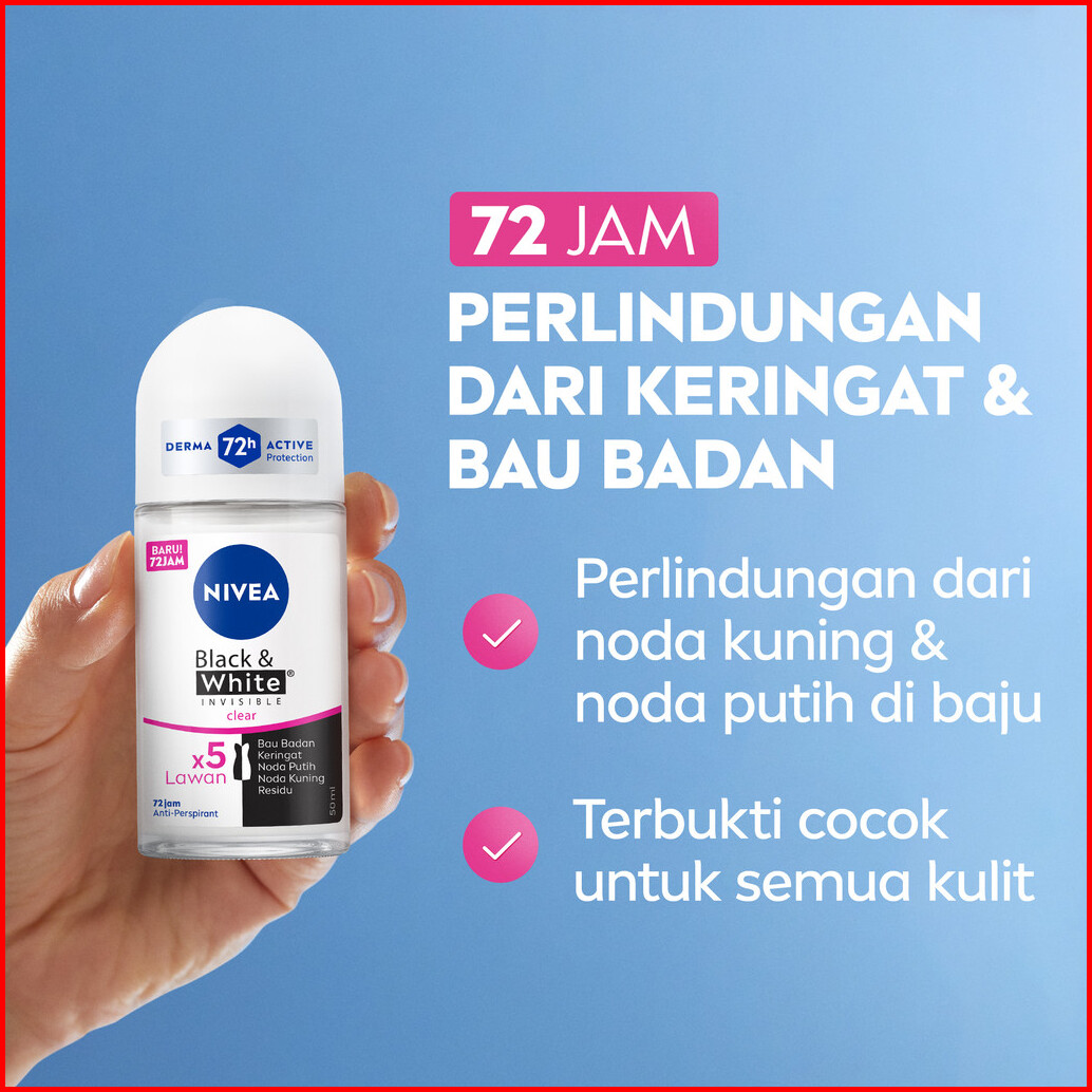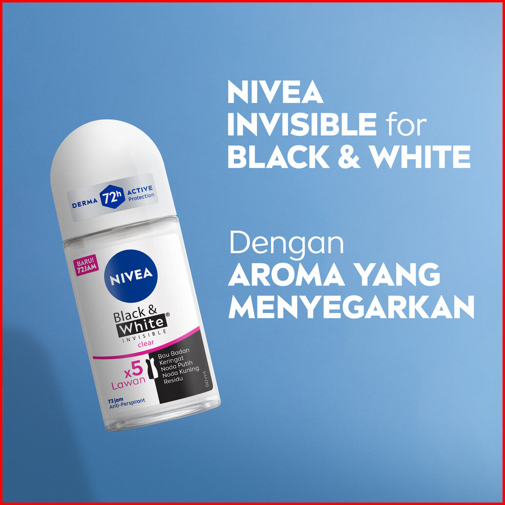 Nivea Deodorant Roll On Black White Invisible Original 50ml - Deodoran Wanita Melawan Bau Badan Tahan Keringat Anti Noda