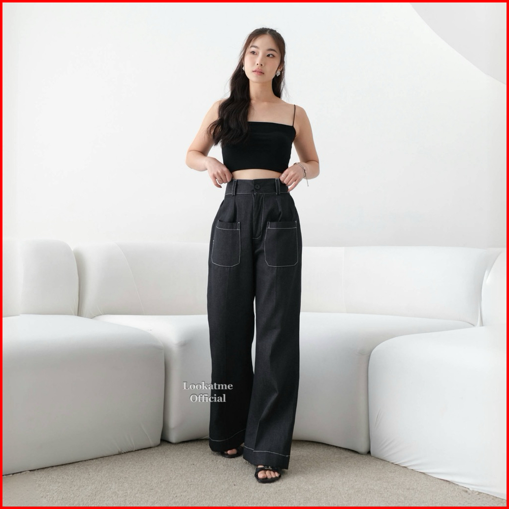 Brooklyn Pants - Celana Panjang Denim Waita Long Cullote Pants Celana Highwaist Straight Leg Denim Long Cullote Pants