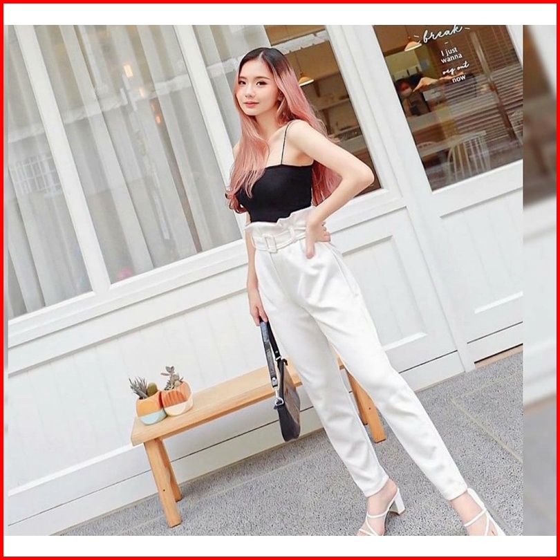 Office Belt Pants Celana Highwaist Scuba Office Belt Pants - Celana Kantor Wanita