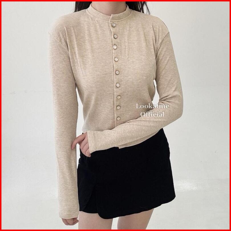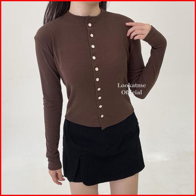 Nicole Top - Atasan Wanita Longsleeve Full Kancing Lengan Panjang Casual Bahan Knit Cardigan Hijab Melar Stretch Nyaman