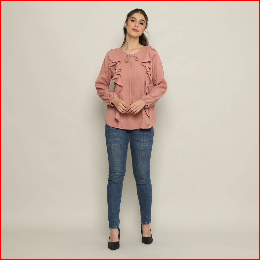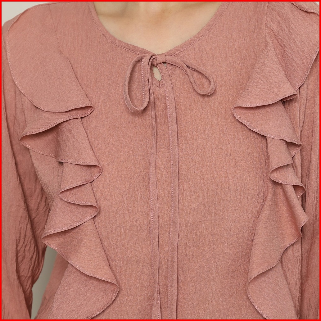Fame - Ruffle Blouse Wanita Lengan Panjang Dusty Pink - 9211759