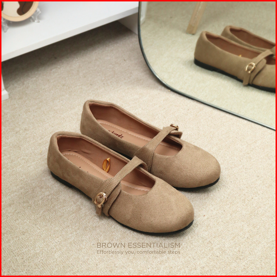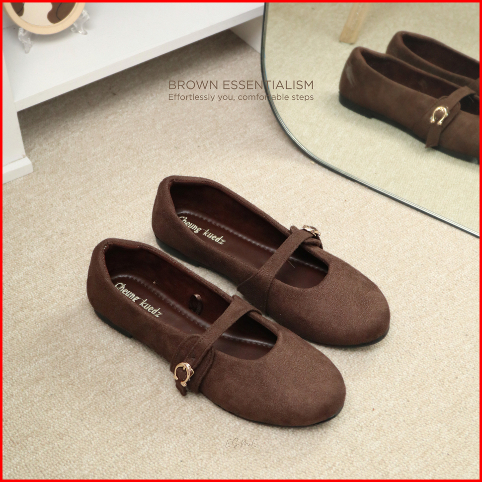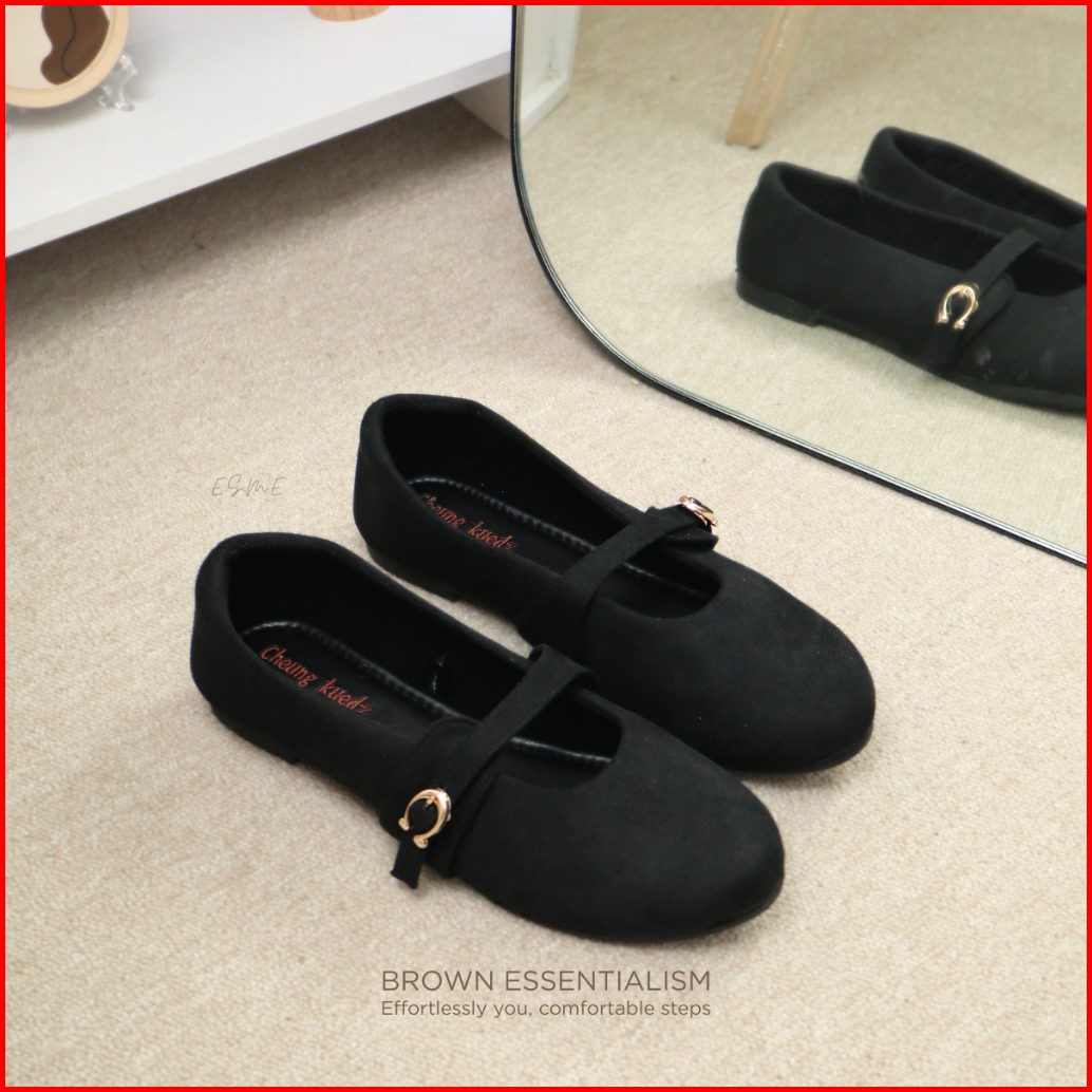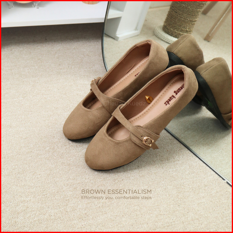 Cheung Kuedz Esme Flat Shoes Wanita Bahan Suede Lembut Dengan Strap Nyaman