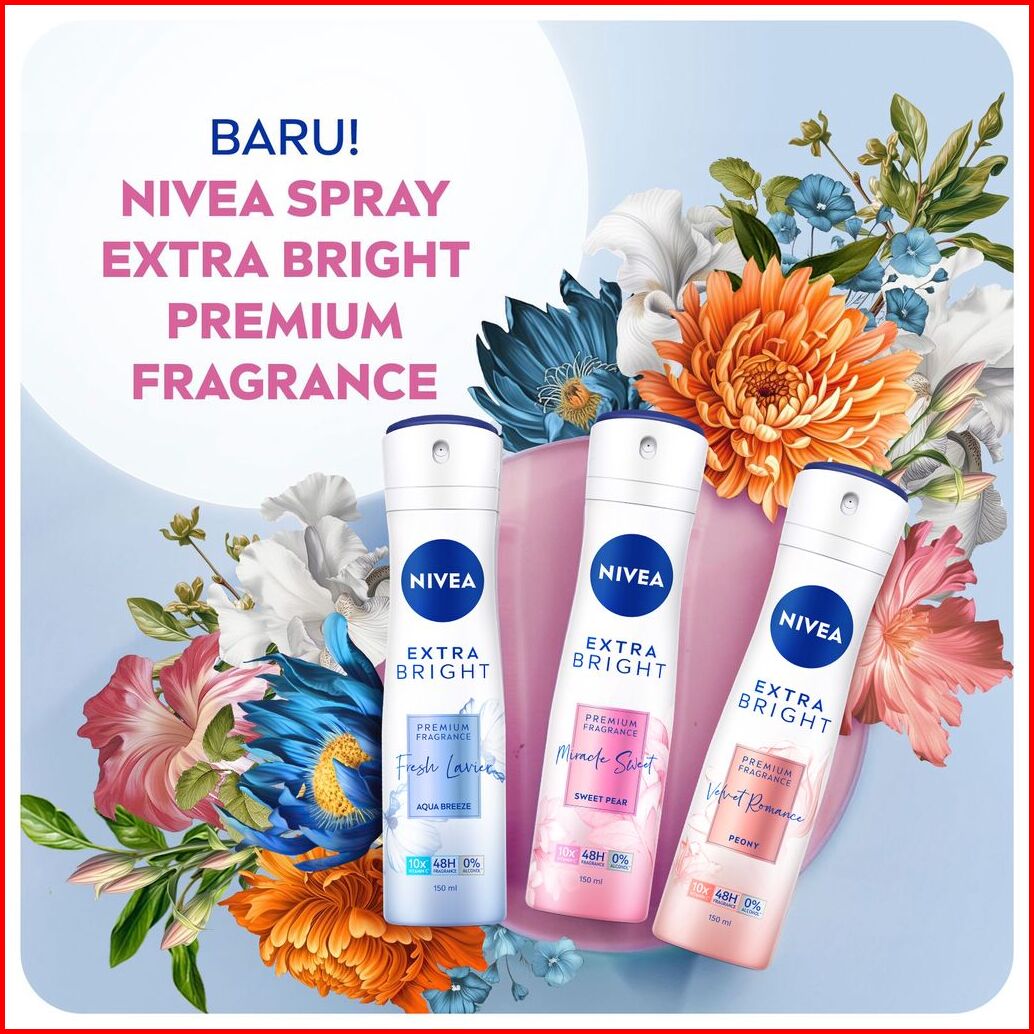 Nivea Deodorant Spray Extra Bright Premium Fragrance Fresh Lavier 150ml - Deodoran Semprot Wanita Mencerahkan Brightenin