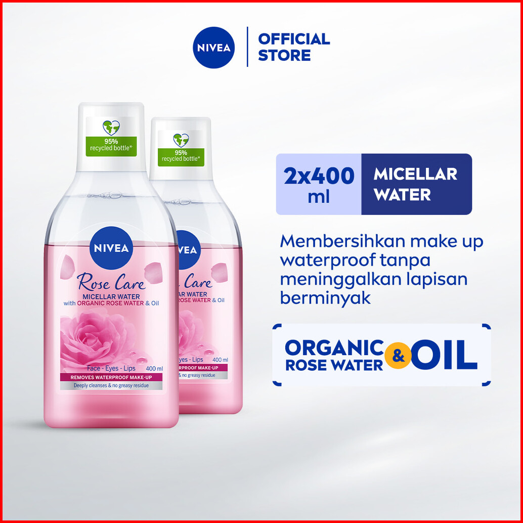 Paket Hemat Isi 2 Nivea Micellar Water In Oil Rose Care Organic Rose Water 400ml - Pembersih Make Up Makeup Remover Menc