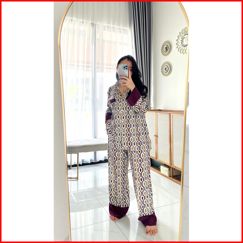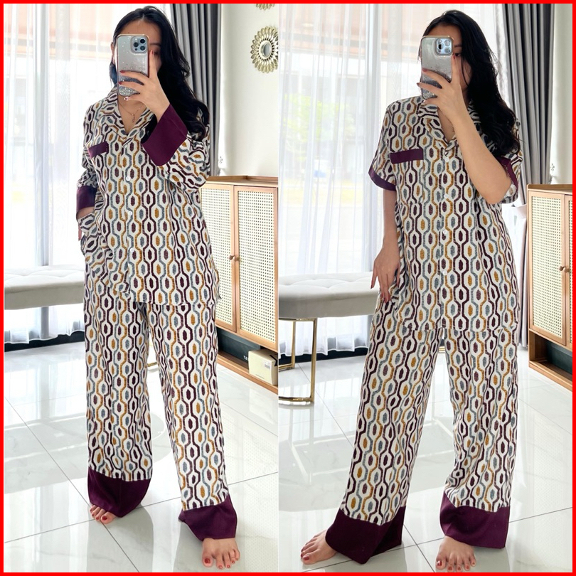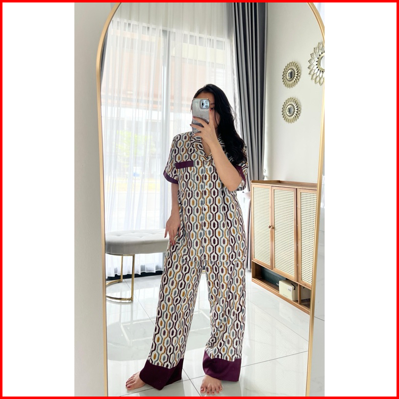Best Seller Wenggo - Eirin Set Oval Plum Piyama Wanita Rayon Premium Celana Panjang Pendek Baju Tidur Lengan Pendek Wani