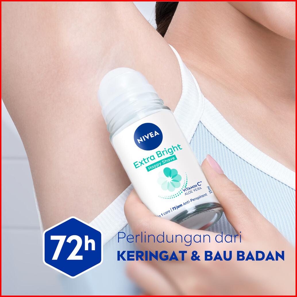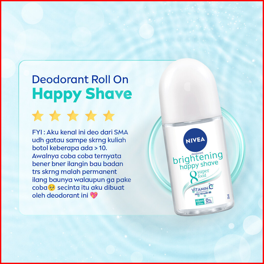 Paket Hemat Isi 4 Nivea Deodorant Roll On Brightening Happy Shave 25ml - Deodoran Wanita Mencerahkan Mencerahkan Brighte