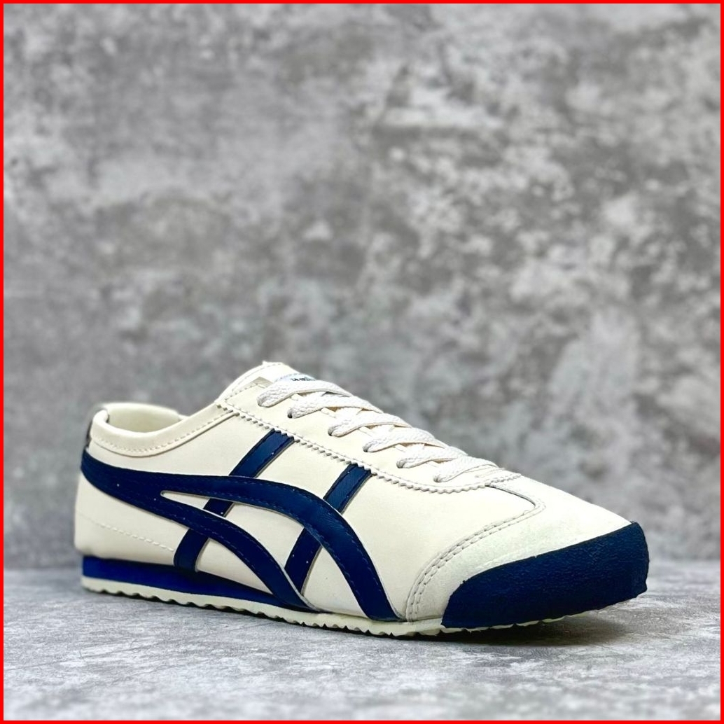 Onitsuka - Sepatu Sneakers Onisuka Tiger Mexico 66 Cream Navy Pria Wanita Spatu Sport Olahraga Lari Cewek Cowok K
