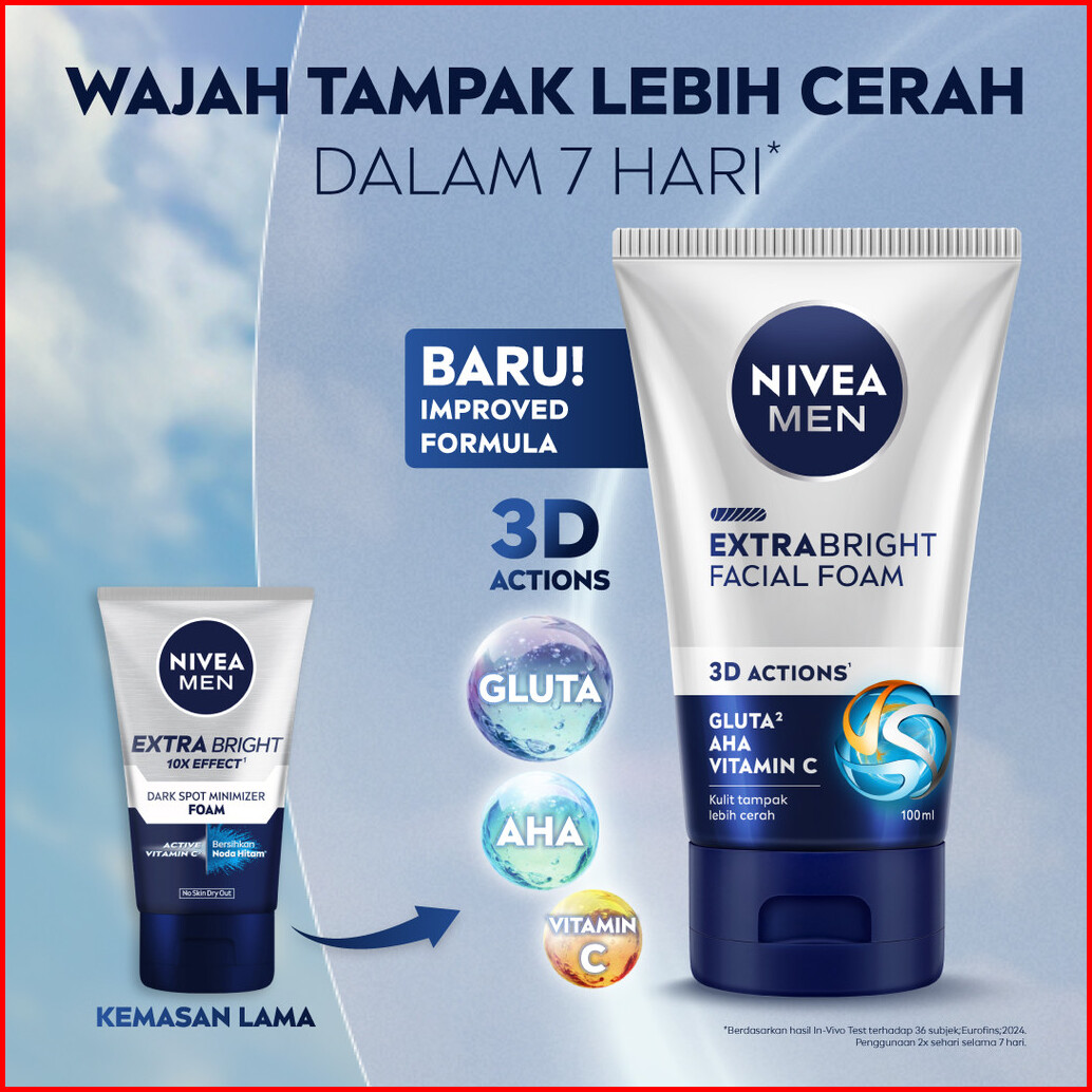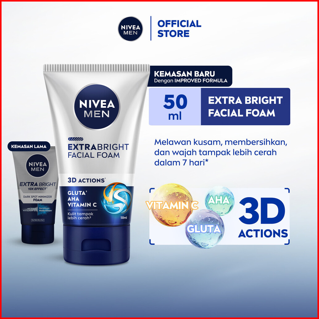 Nivea Men Facial Foam Extra Bright Facial Foam 50ml - Sabun Cuci Muka Pria Mencerahkan Bintik Hitam Brightening Kulit Ku