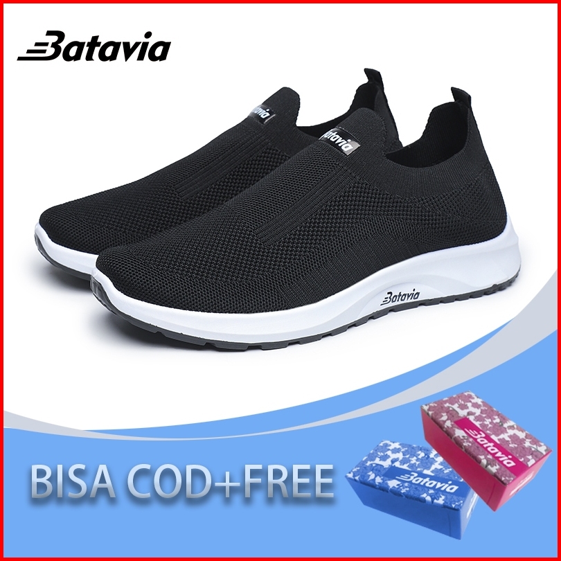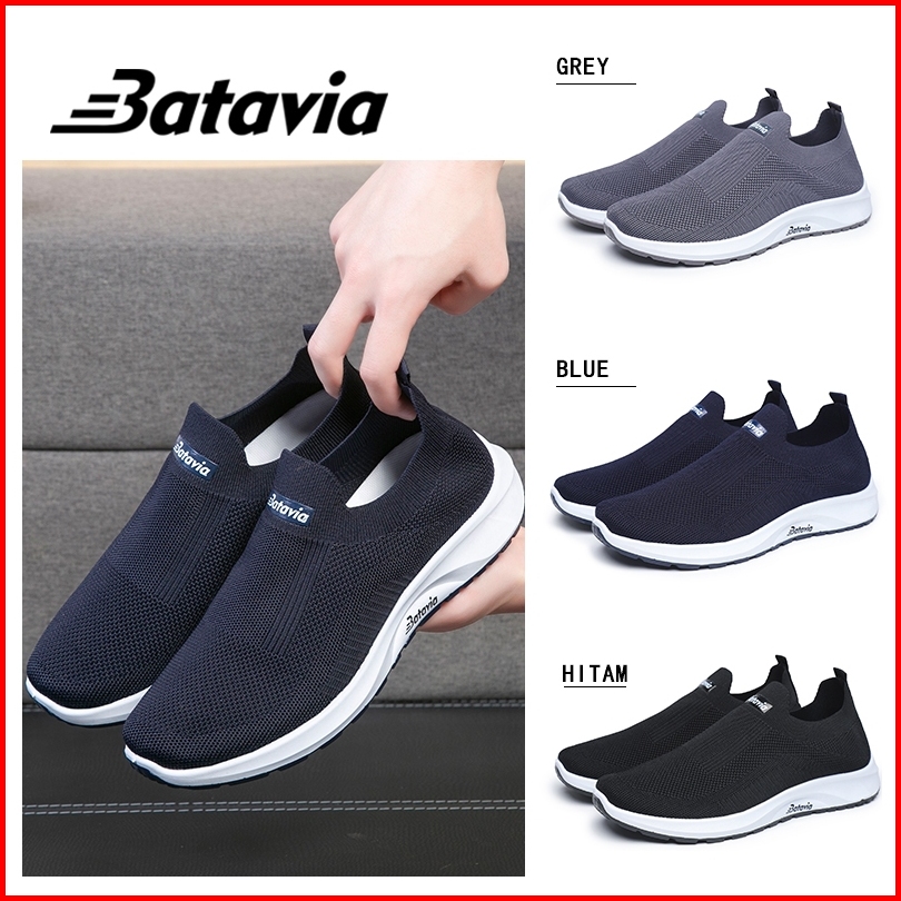 Batavia Sepatu Pria Rajut Sepatu Pria Sepatu Tanpa Tali Hitam Sepatu Pria Sport Sneakers B22