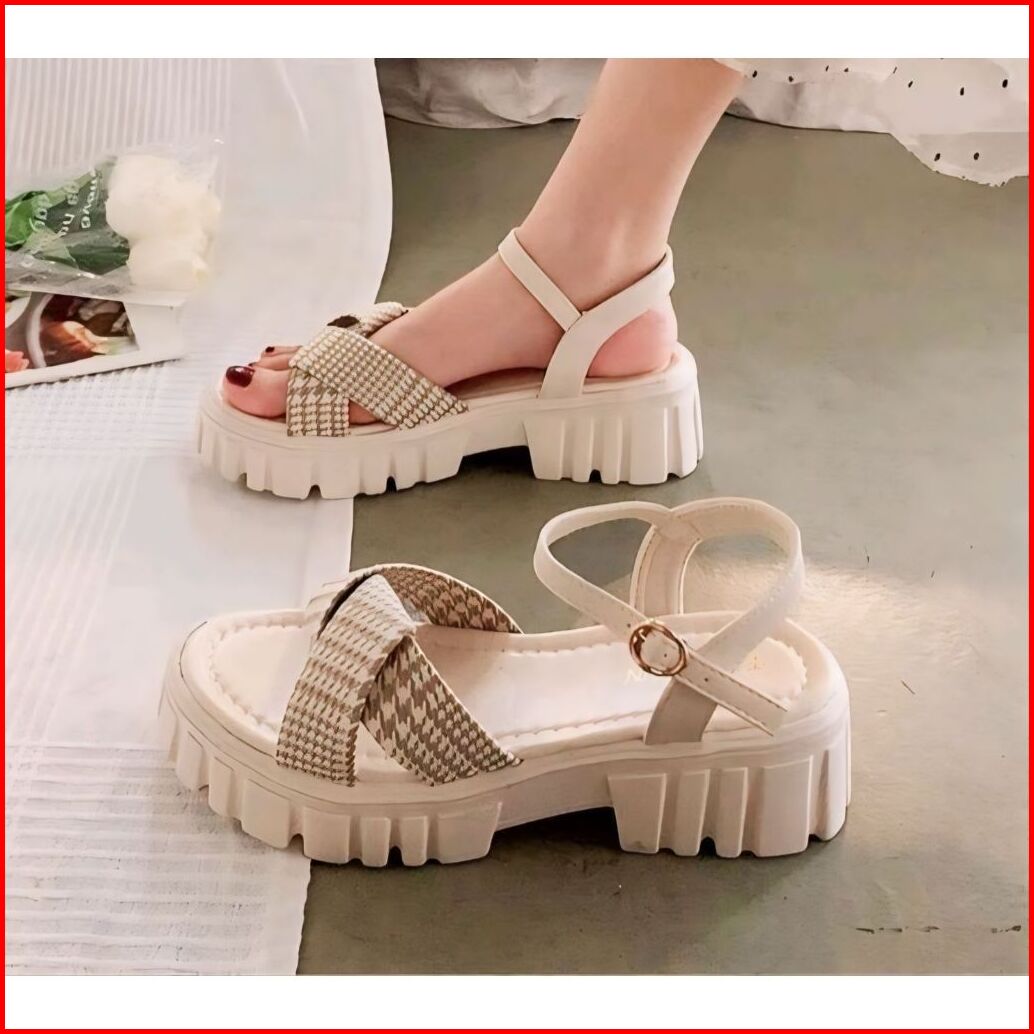 Sandal Wedges Wanita Kanvas Motif Fashion Musim Panas
