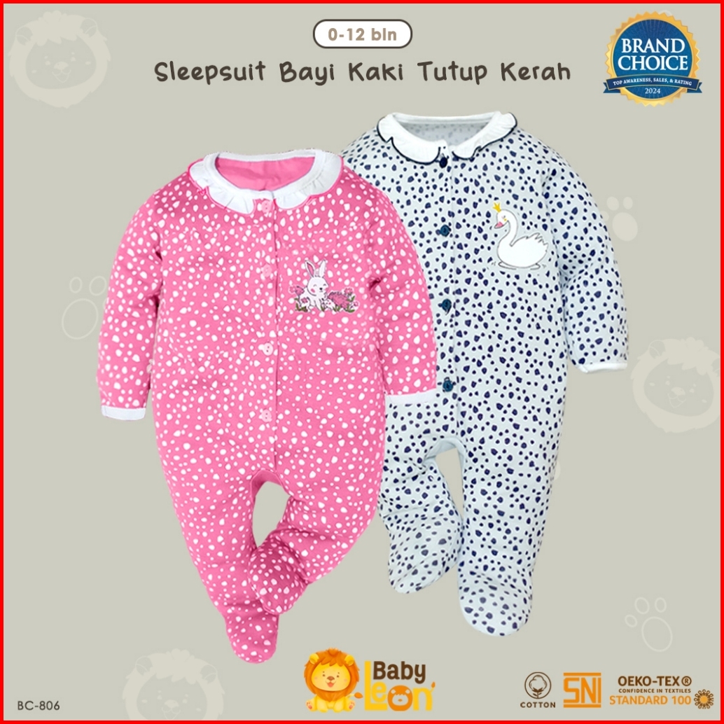 Baby Leon Sleepsuit Bayi Jumpsuit Bayi Jumpsuit Newborn Sleepsuit Bayi Tutup Kaki 0 12 Bulan Bc-808 Bc-806 Bc-807