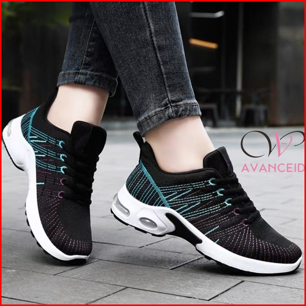 Avanceid Haein Sepatu Sneakers Wanita Sekolah Olahraga Sport Hitam Putih