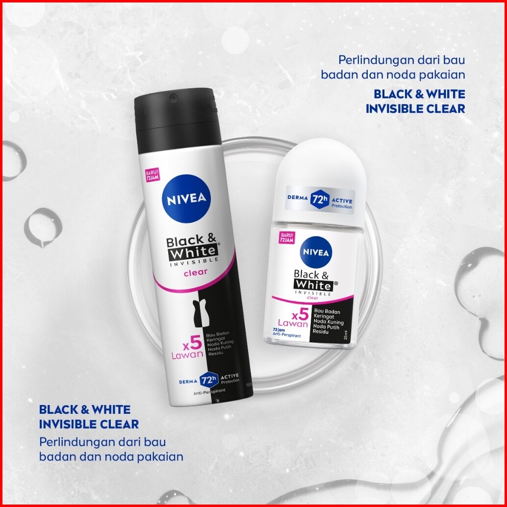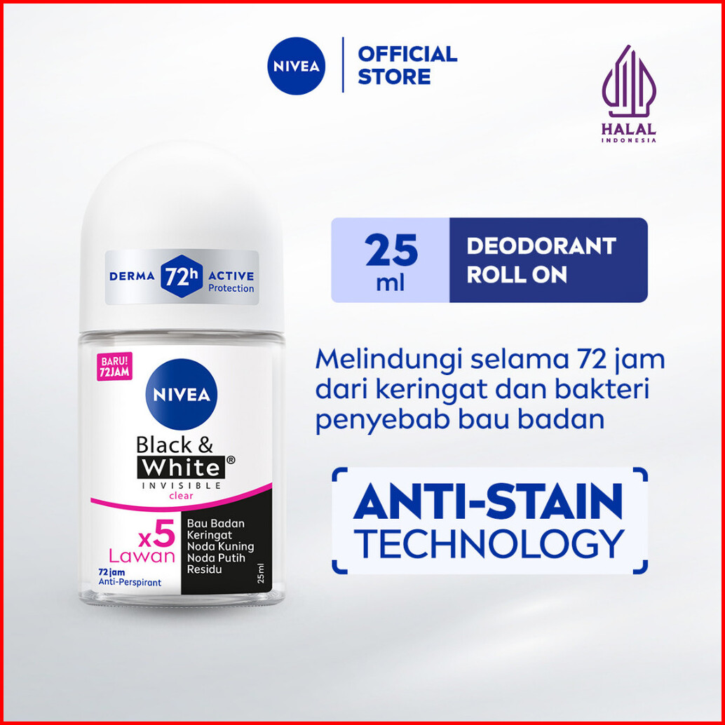 Nivea Deodorant Roll On Black White Invisible Original 25ml - Deodoran Wanita Melawan Bau Badan Tahan Keringat Anti Noda